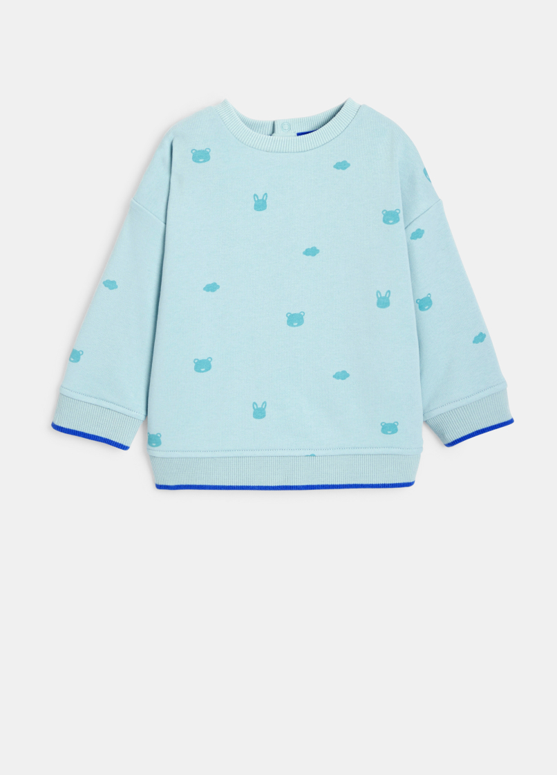 سويت شيرت من الصوف الناعم باللون الأزرق، مع قلنسوة وسحّاب، للفتيان الصغار