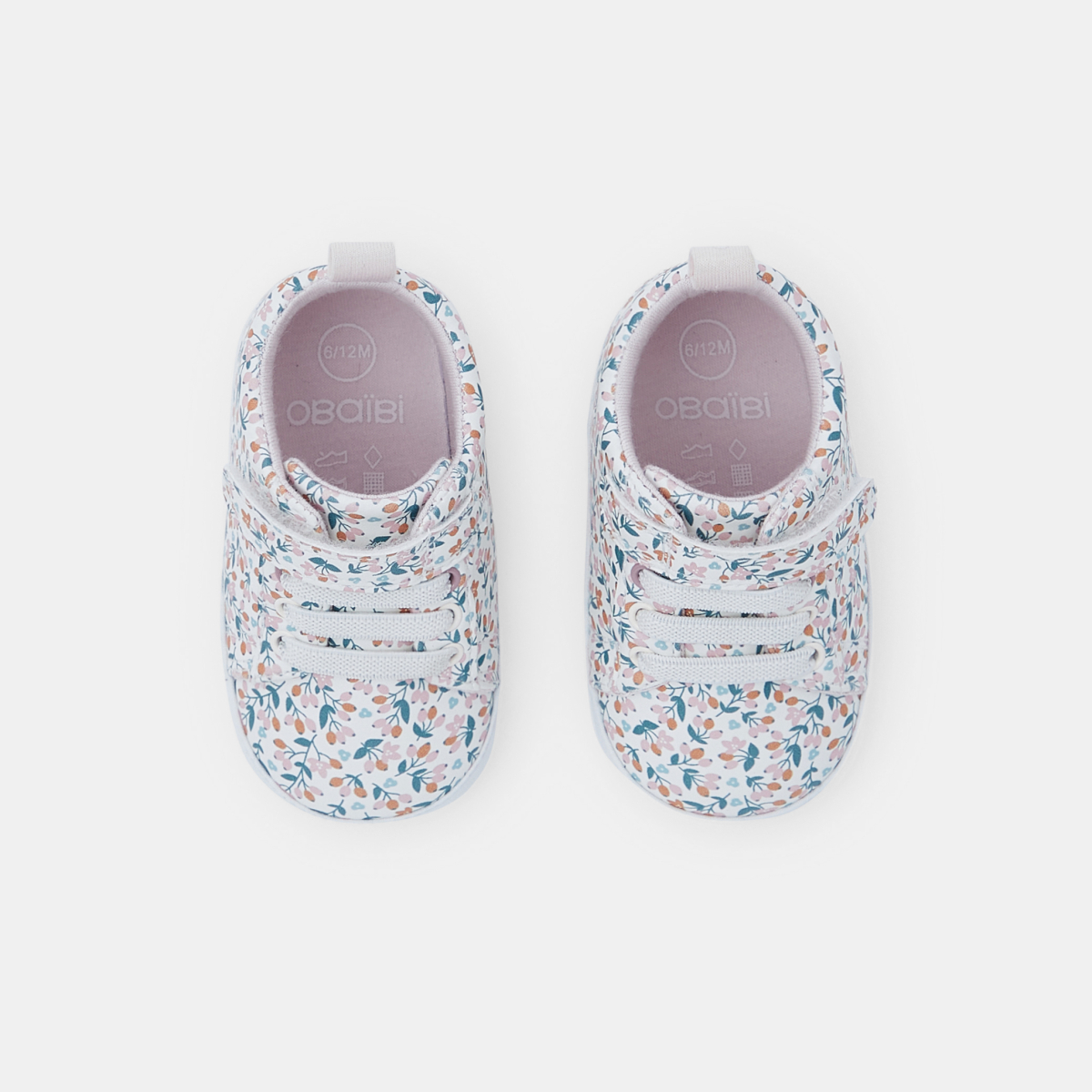 وصفي أول حذاء قماشي للفتيات، يتميز بمرونته وارتفاعه للمحافظة عليه دون خلعه. الكل يحب هذا النمط من الرسومات المتناسقة مع خزانة ملابس Obaïbi. شريط لاصق لتثبيته في القدم بصورة جيدة. بطانة داخلية من القطن الناعم.