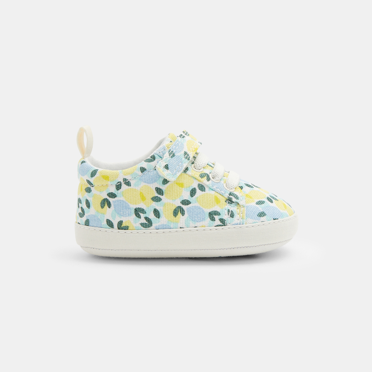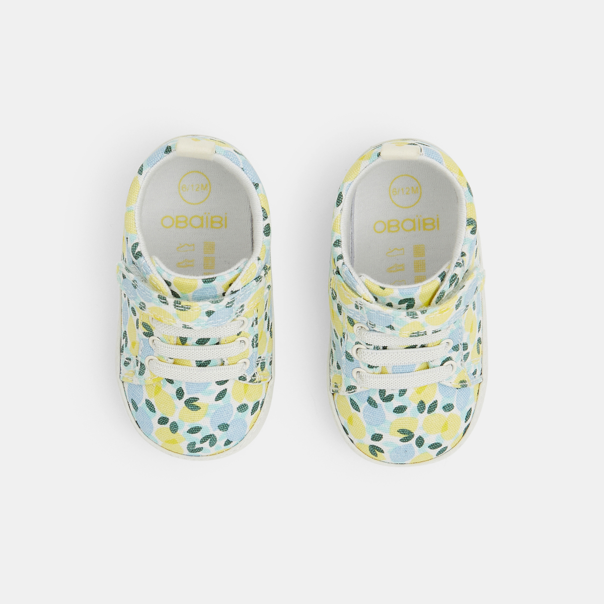 وصفي رسومات على الجانب تضفي بعض الإثارة على إطلالات الصغار. حذاء رياضي ناعم من القماش المطبوع، يمكن تنسيقه مع مجموعات Obaïbi. الغلق بشريط لاصق على الجانب ليثبت جيدًا في مكانه.
