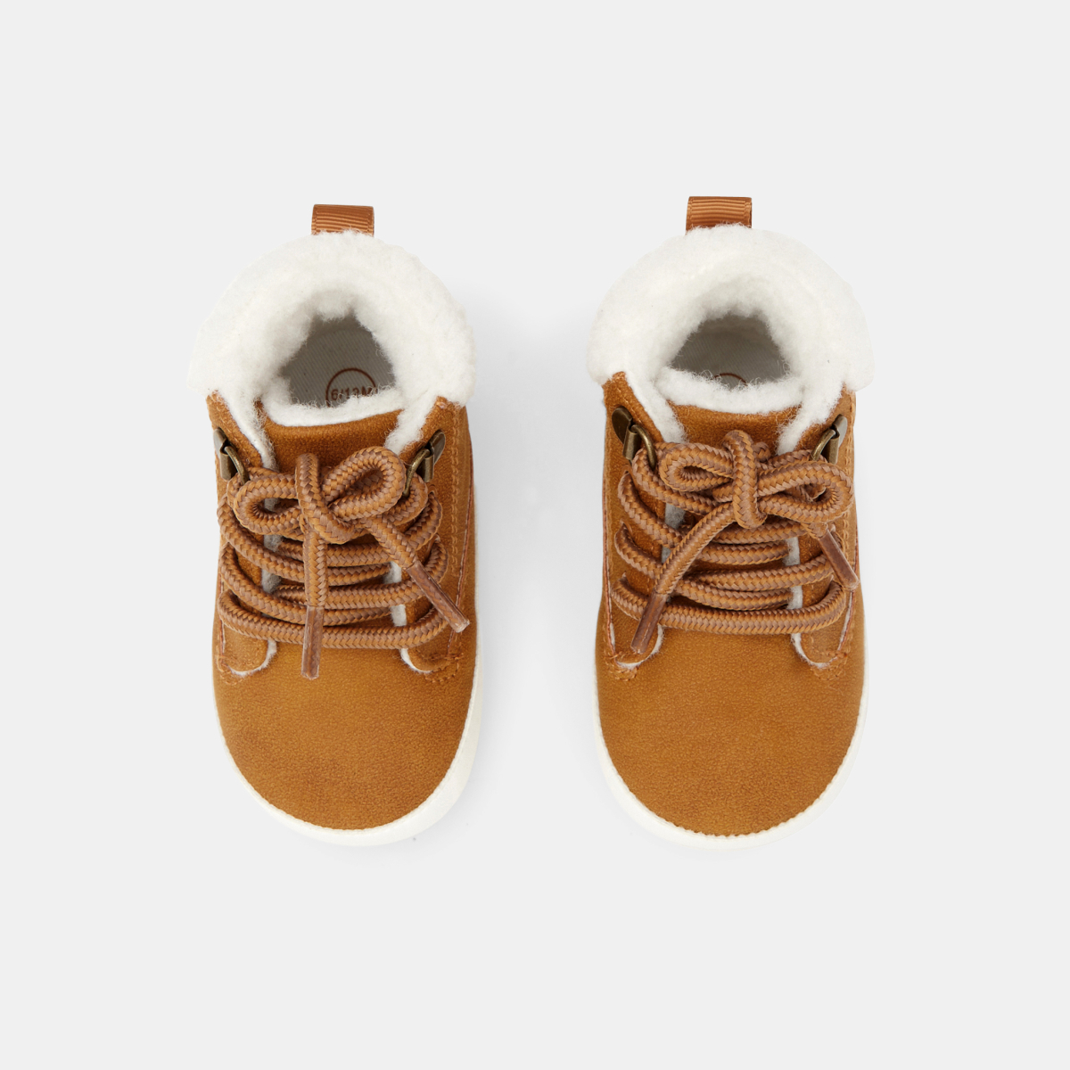 حذاء بوت دافئ مبطّن بالفرو باللون البني للأولاد الصغار