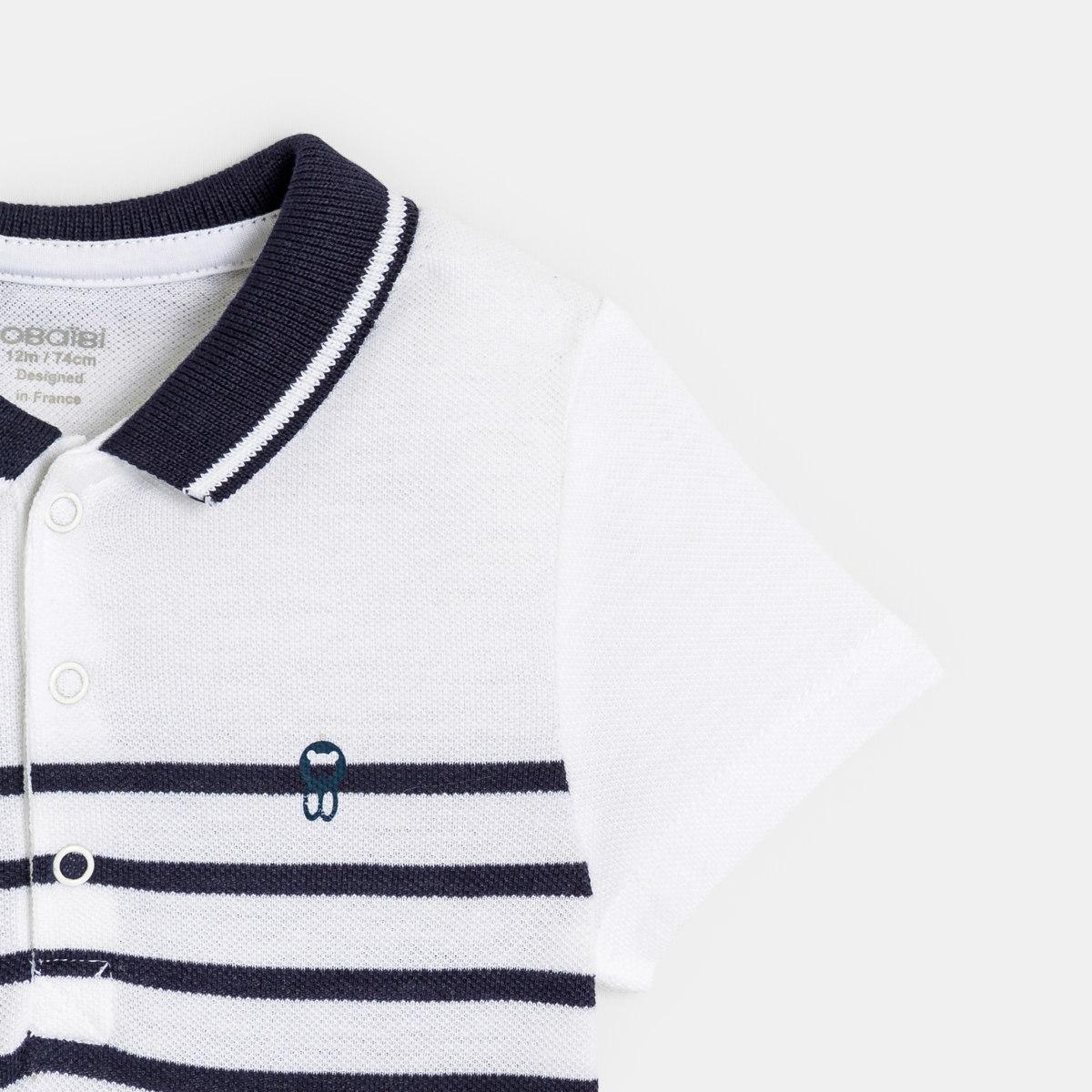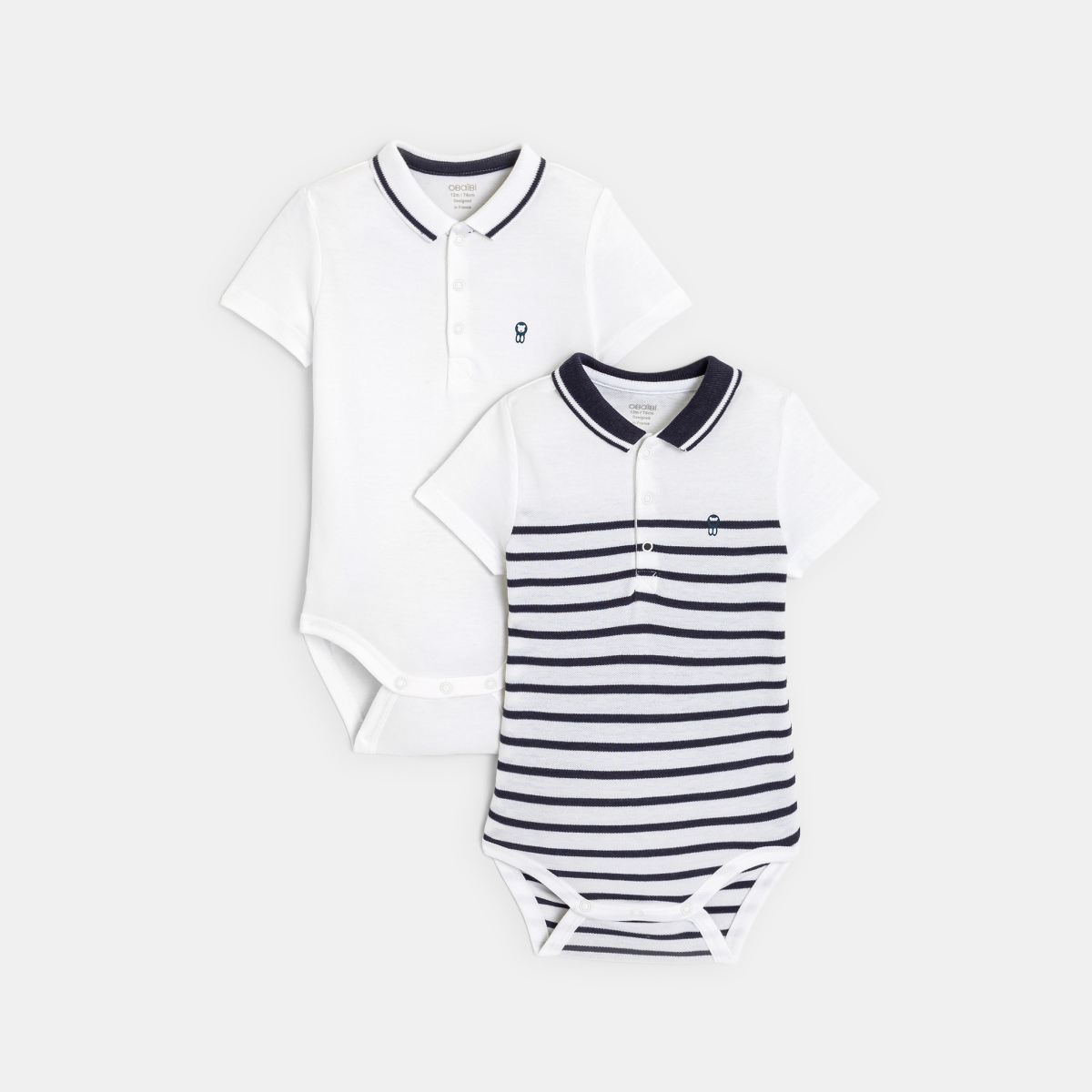 وصفي لكي ترتدي ملابس مثل البالغين، لا يوجد شيء أفضل من نسيج بيكيه وياقة بولو بأزرار! هذه المجموعة المكونة من قطعتين من الملابس الداخلية بأكمام قصيرة ضرورية في خزانة ملابس الصبي. نموذج عادي وآخر مخطط. أزرار كبس عند الحوض لسهولة الارتداء.