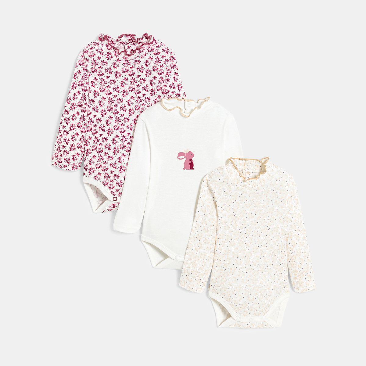 تُحب الفتيات الصغيرات تفاصيل هذا البودي ذو الأكمام الطويلة ! ياقة صغيرة بها كشكشة، وكذلك رسمة مطبوعة لزهور وأرنب صغير مسلي تُزيِّن البودي : هذه القطعة الأساسية والضرورية في خزانة ملابس الفتيات، تمنح الفتيات النعومة بشكل يومي. العبوة 3.قطع