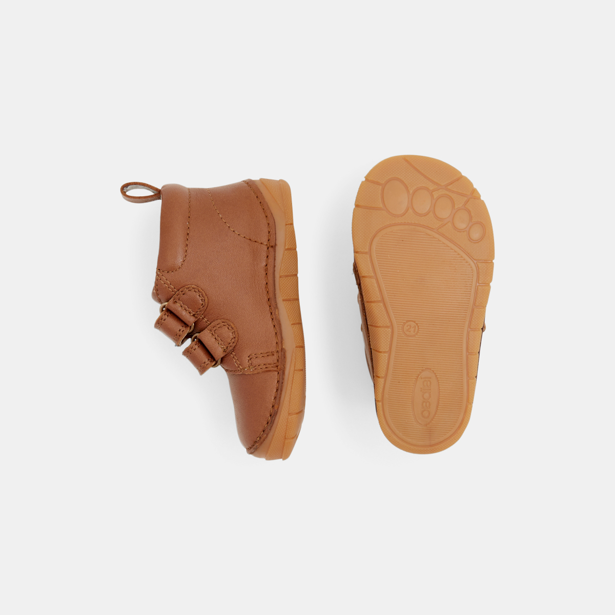حذاء برقبة مرتفعة من الجلد للخطوات الأولى باللون البني للأولاد الصغار