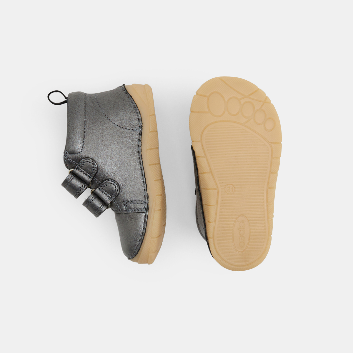 حذاء برقبة لامع للخطوات الأولى باللون الرمادي للفتيات الصغيرات