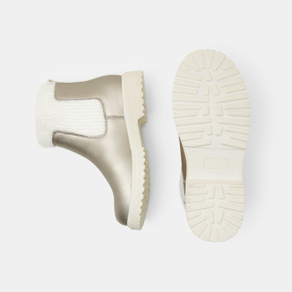حذاء بوت مطاطي باللون الرمادي اللامع للفتيات