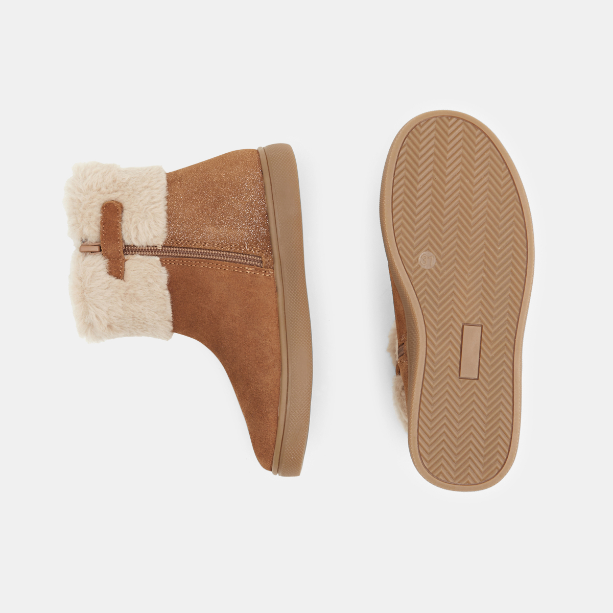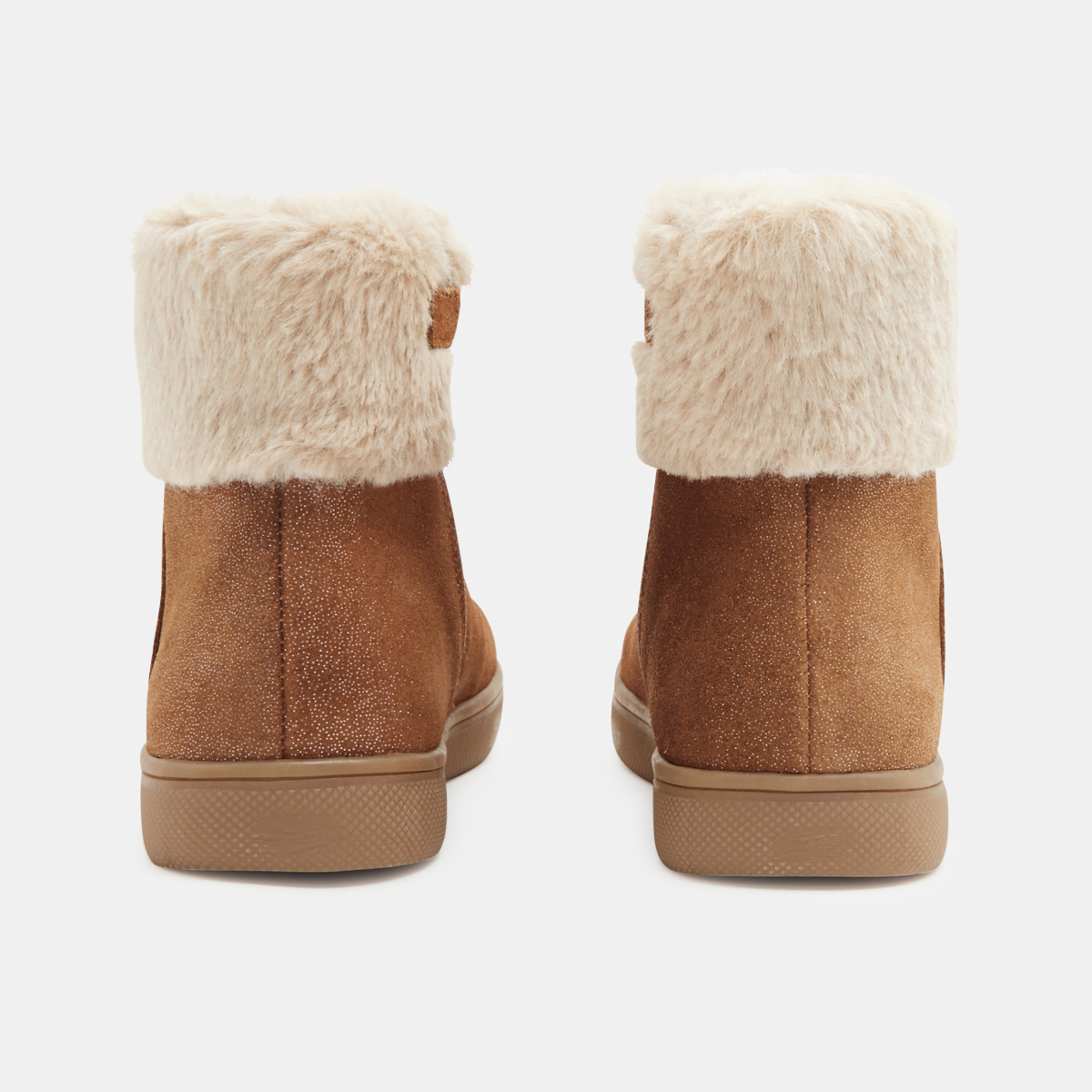 حذاء بوت من الجلد مبطّن بالفرو باللون البني للفتيات