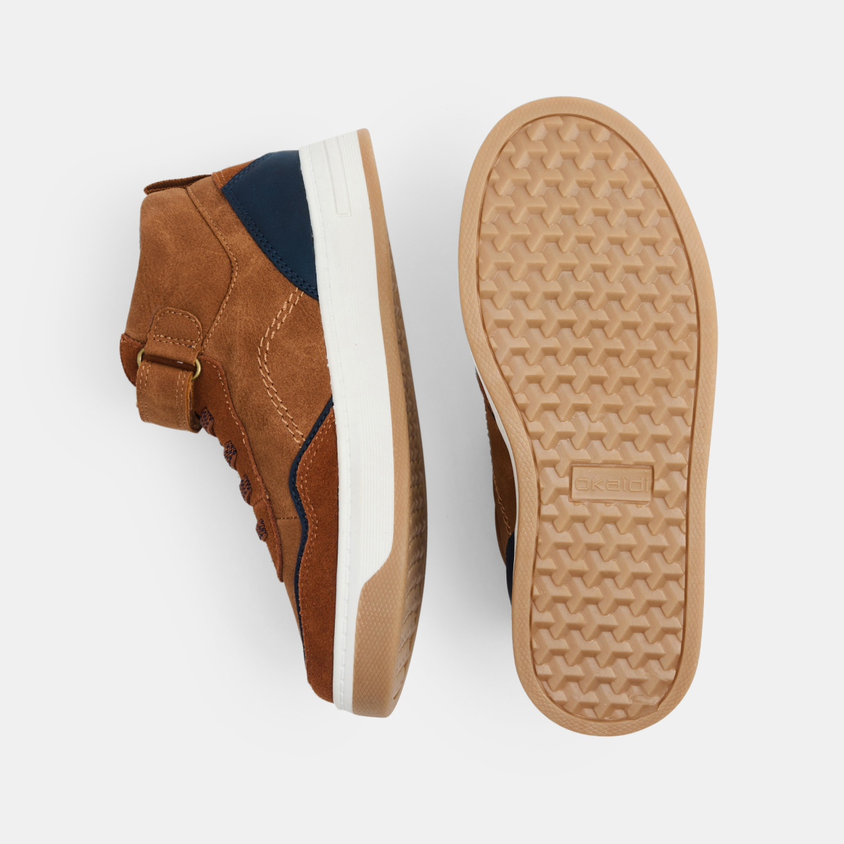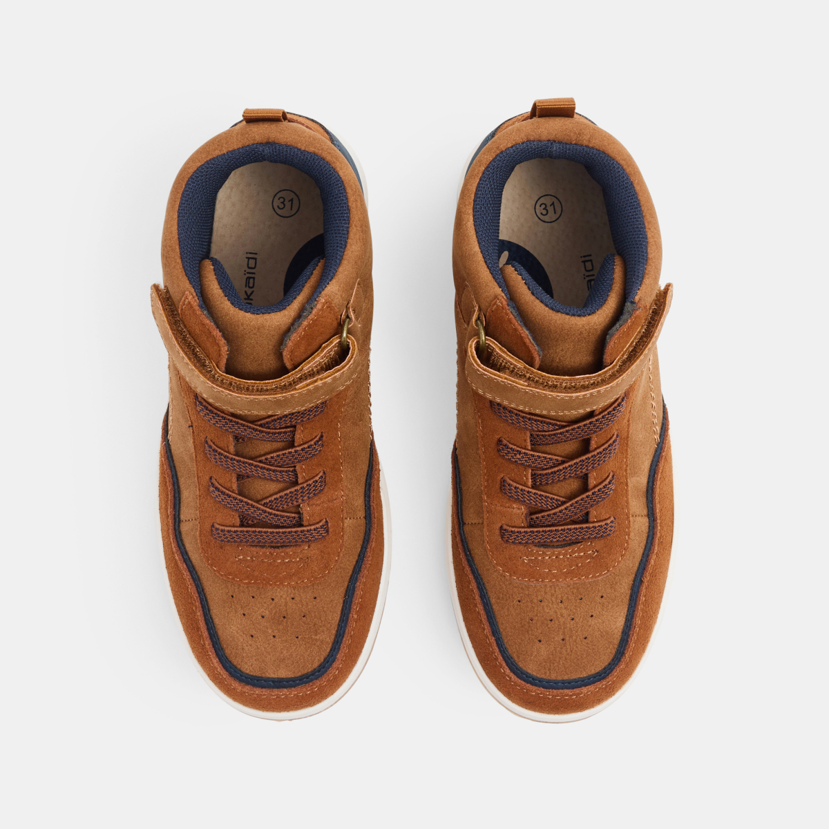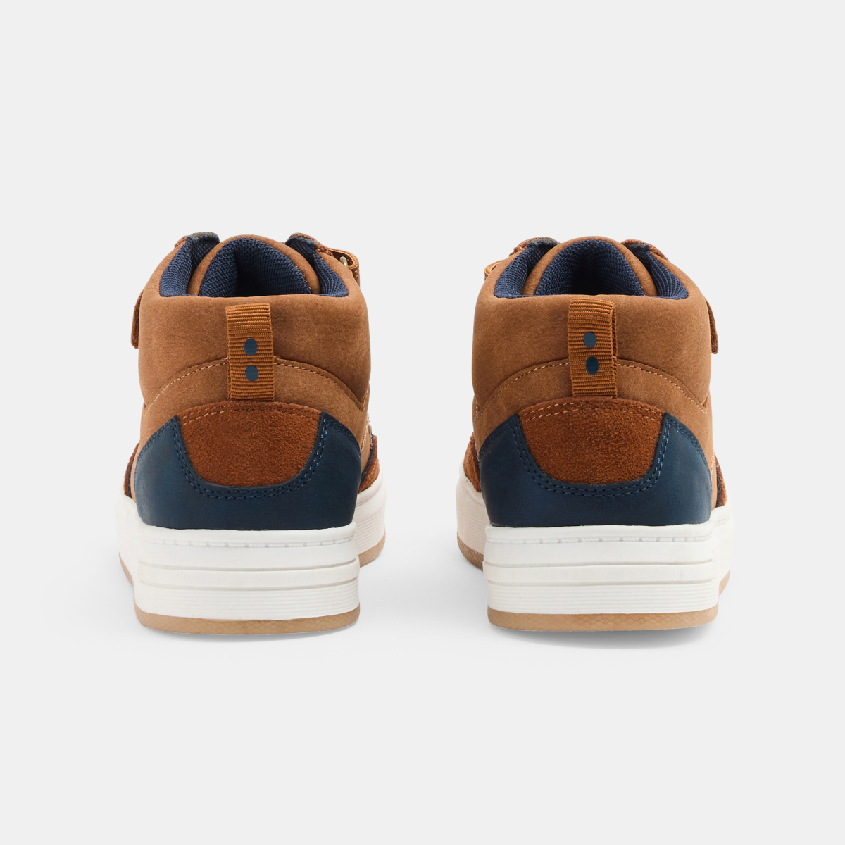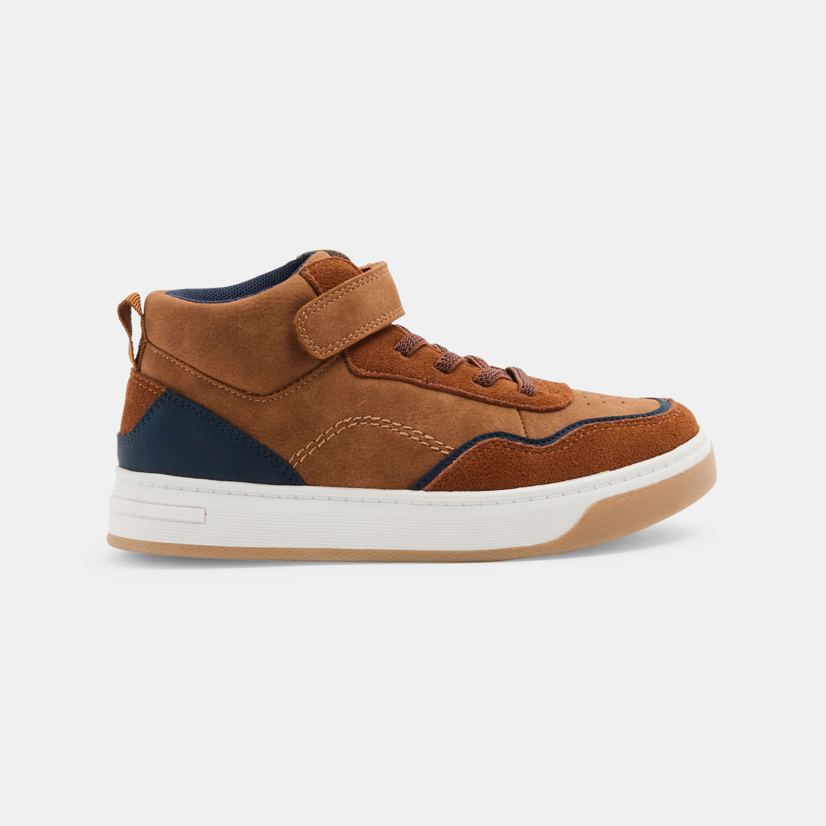 حذاء رياضي باللون البني، عالي الرقبة وبشريط سكرتش، للفتيان