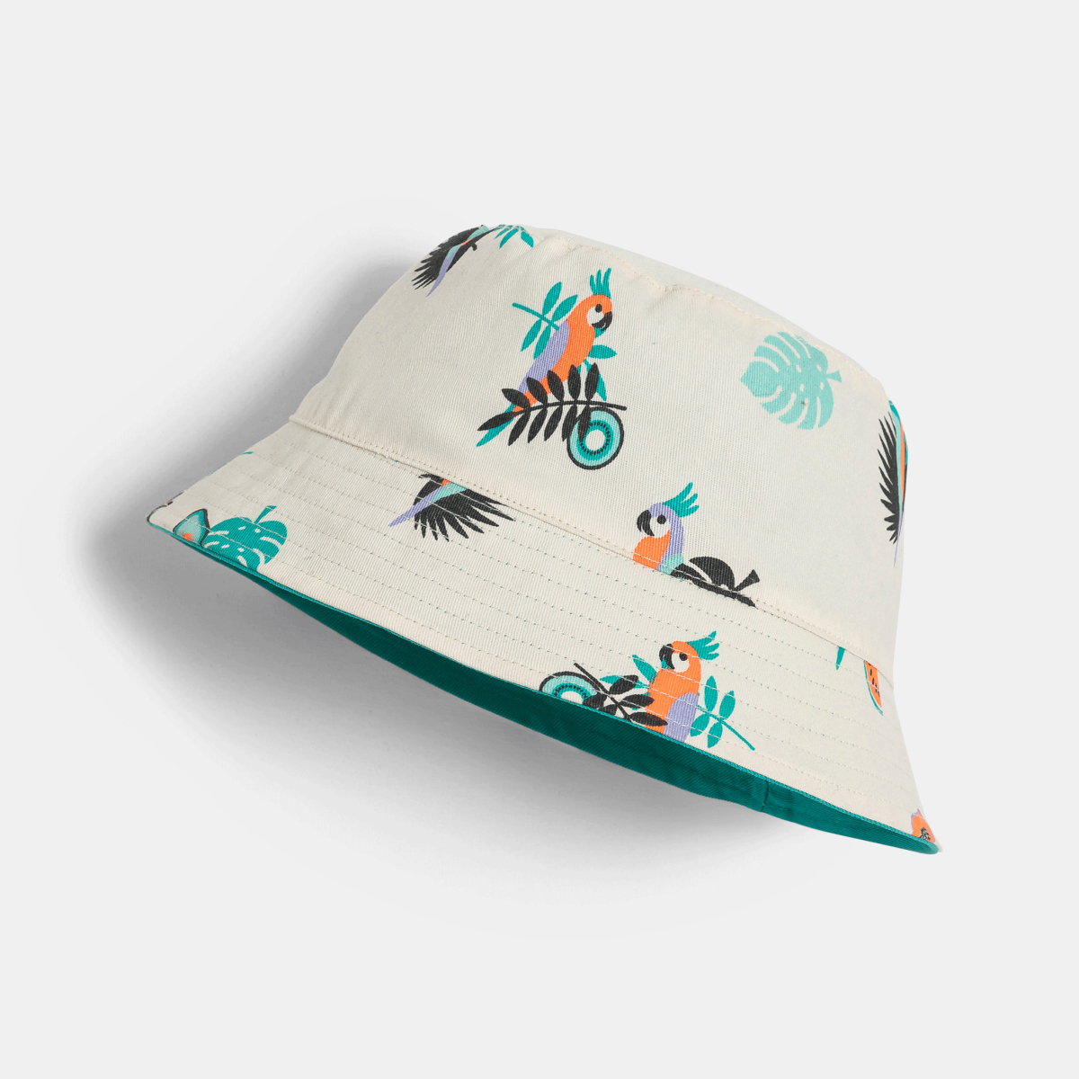طبعة على أحد الجانبين، والجانب الآخر سادة: سيحب الأولاد هذه القبعة المصنوعة من القماش القطني، قطعة ضرورية يمكن ارتداؤها على الجانبين لإطلالات متنوعة! رسومات الطيور على خلفية باللون الرمادي الفاتح في المقدمة. الظهر أخضر سادة. حواف مدروزة. فكرة جيدة للهدايا.