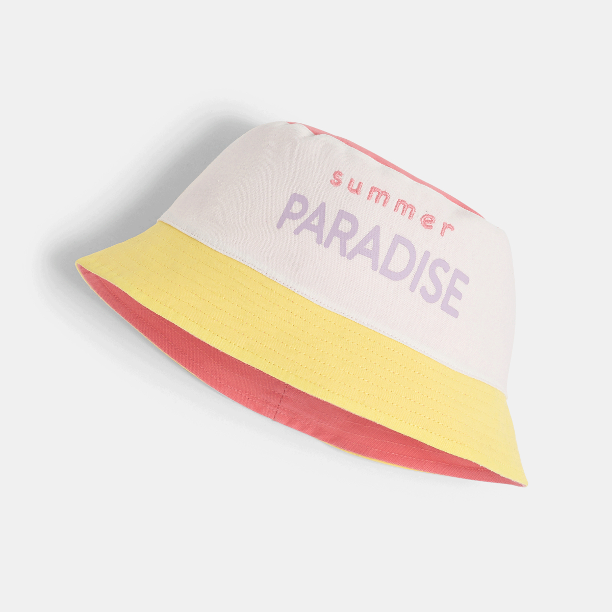 قبعة بتصميم دلو بوجهين مزينة بعبارة باللون الأصفر للفتيات