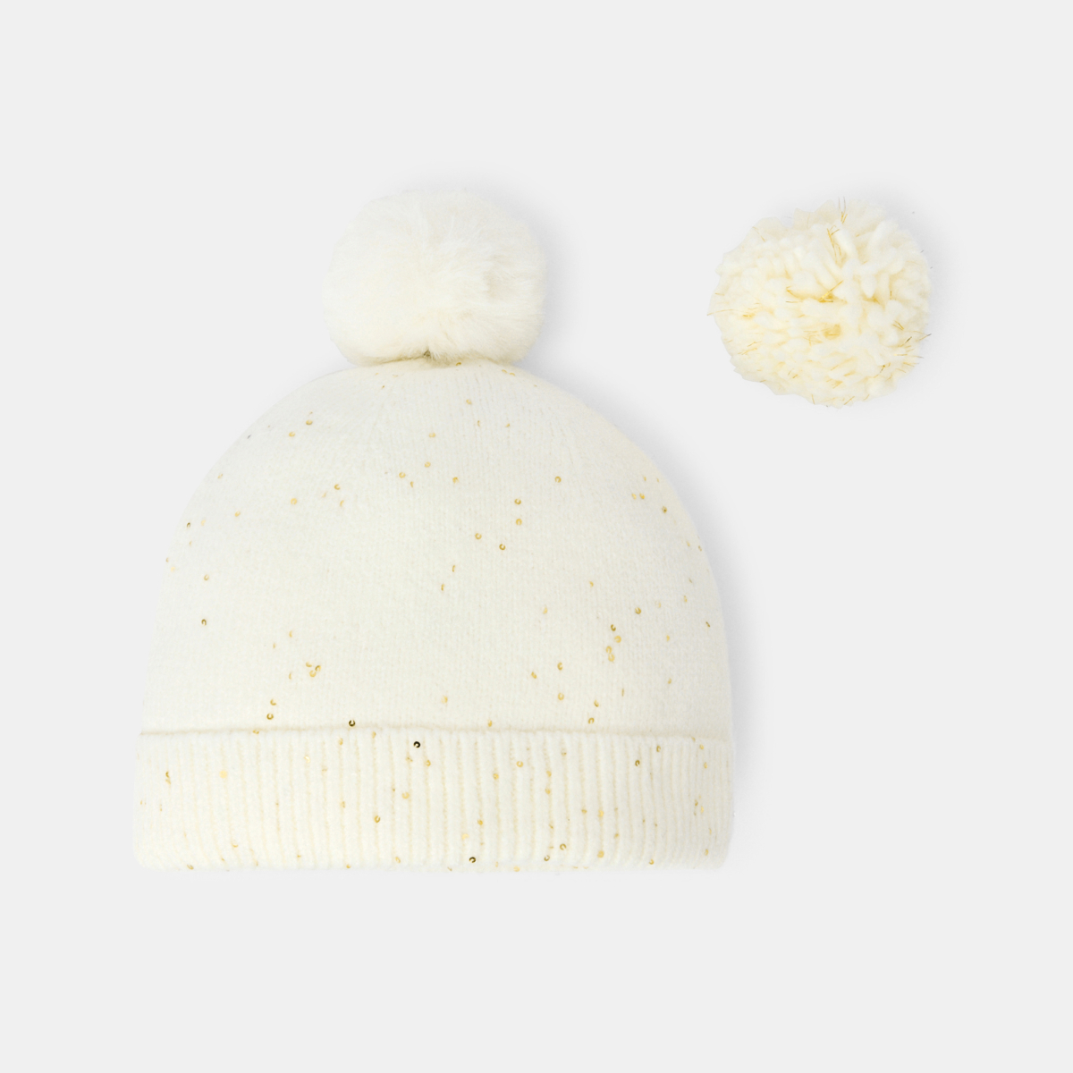 طاقية مزينة بالترتر باللون الأبيض للفتيات