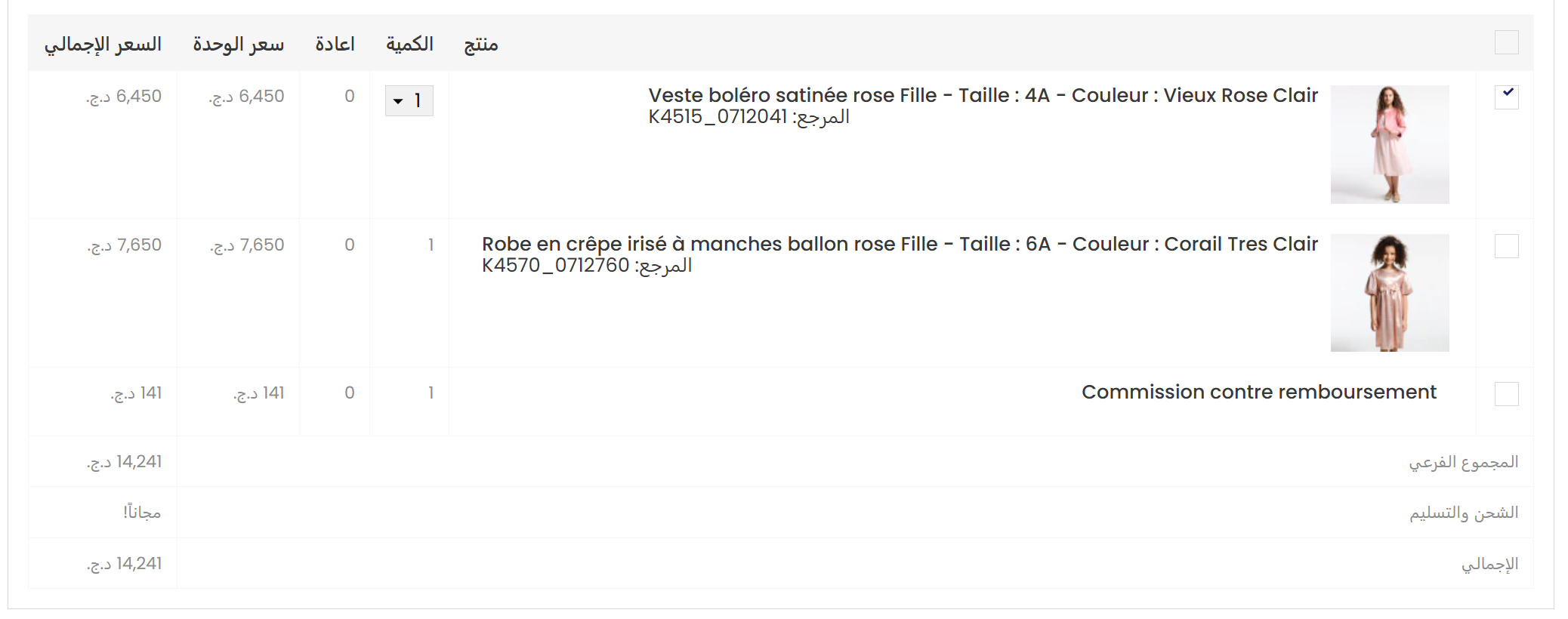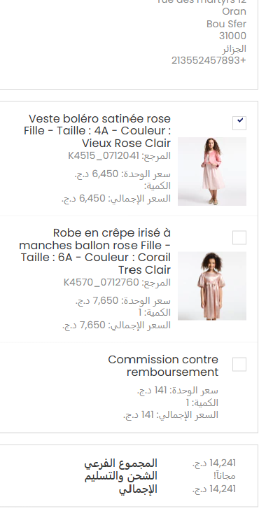 4-بعد الاطلاع على تفاصيل الطلب، اختر المنتج الذي تودّ إرجاعه أو استبداله، وحدد الكمية، وذلك بوضع علامة داخل المربع الصغير الموجود على يسار اسم المنتج.