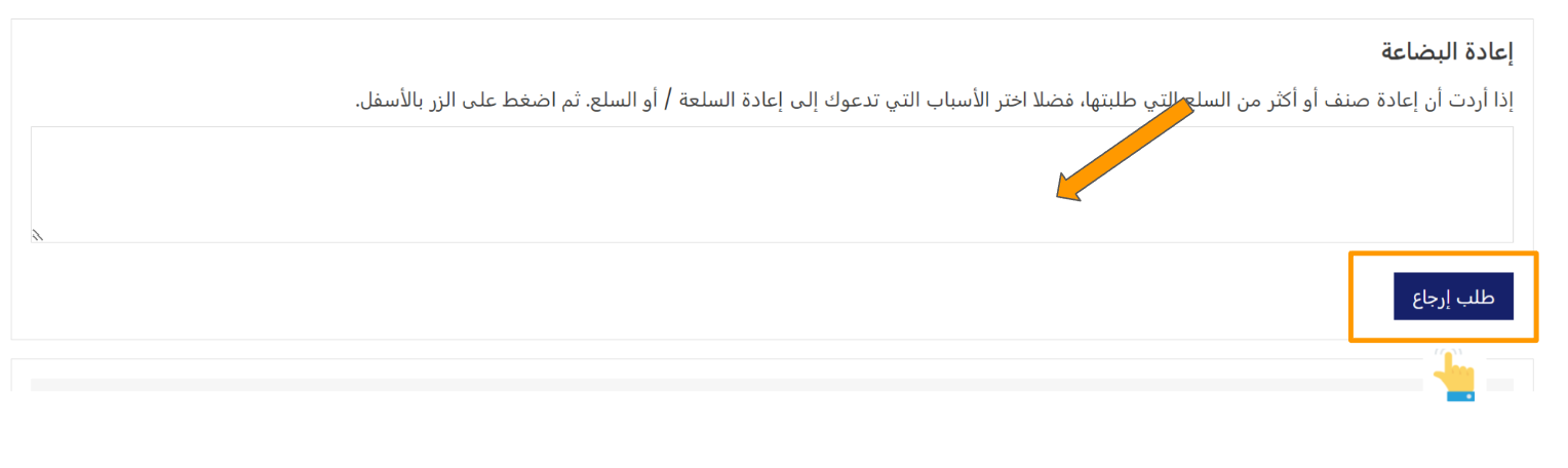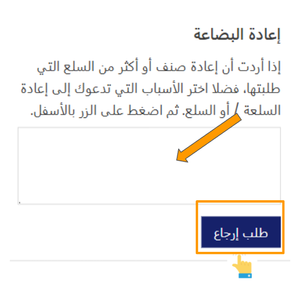 5-بعد ذلك، يمكنك توضيح سبب الإرجاع داخل خانة " ارجاع البضاعة " ثم اضغط على " إعادة ارسال المنتج ".