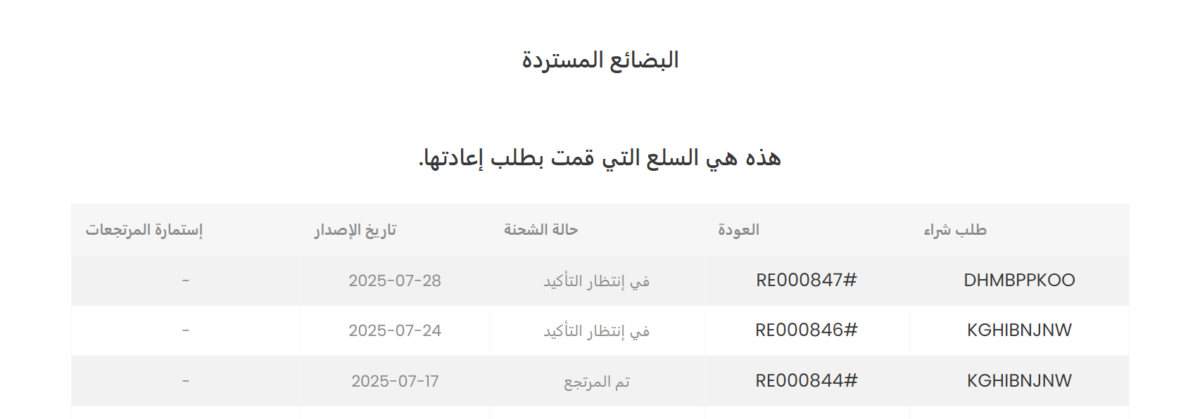 7-بمجرد الموافقة على طلب الإرجاع والتأكد من أنه يطابق شروط الإرجاع والاستبدال ستتلقّى بريدًا إلكترونيًا يحتوي على القسيمة الخاصة بك، كما يمكنك العثور عليها في قسم "القسائم " داخل حسابك.