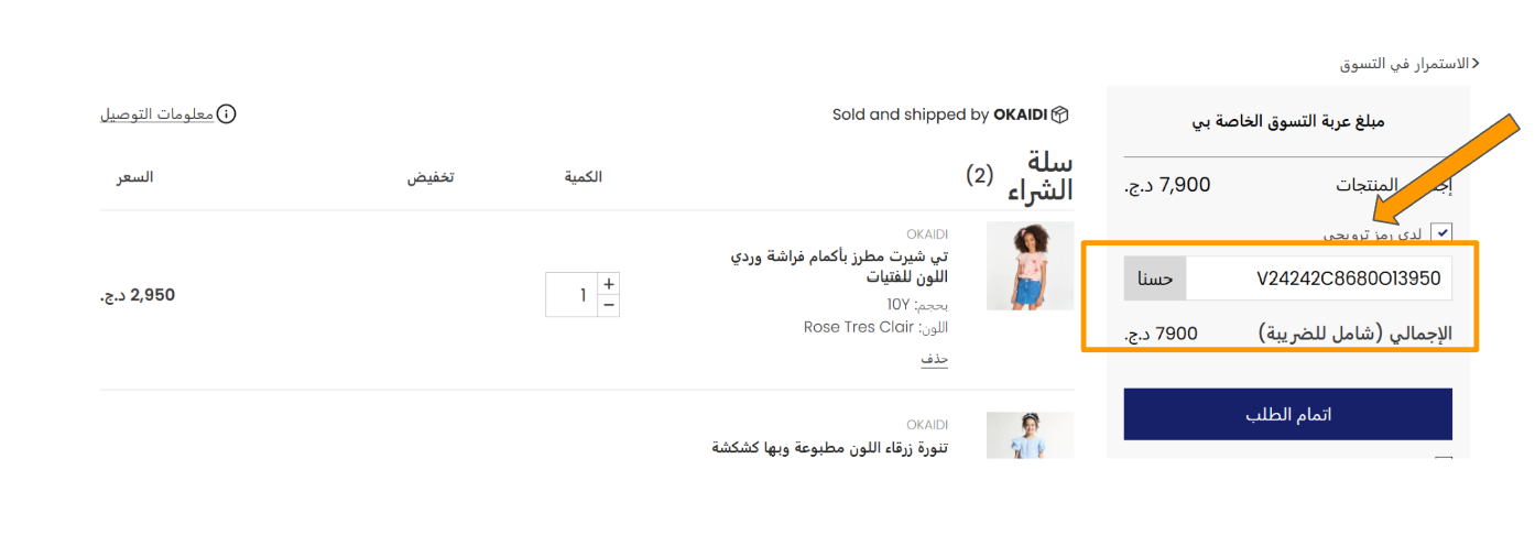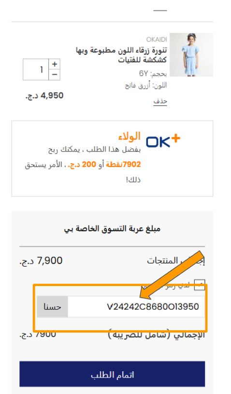 9-بعد ذلك، يمكنك استخدام رمز القسيمة عند إتمام عملية الشراء، عبر تحديد "لدي رمز الإرجاع" وإدخال الرمز في الخانة المخصصة لذلك.