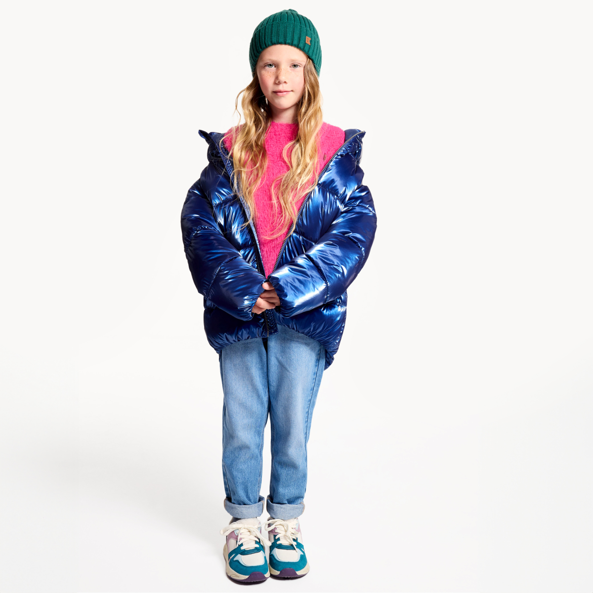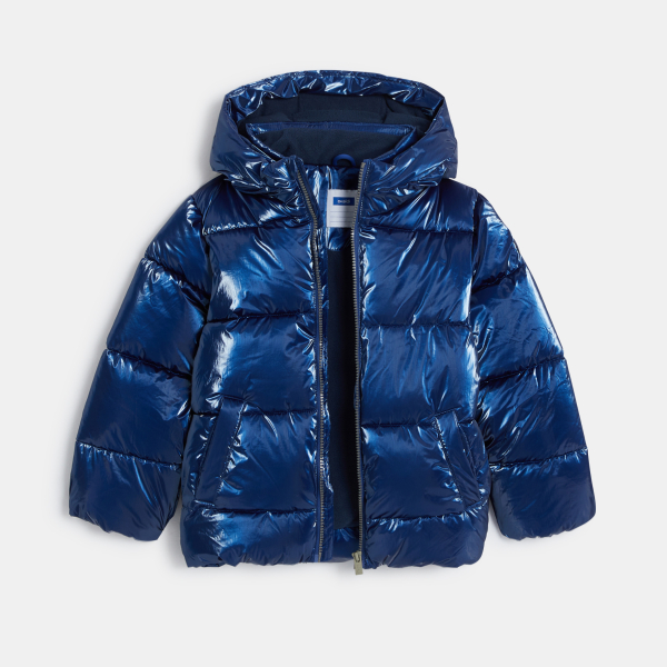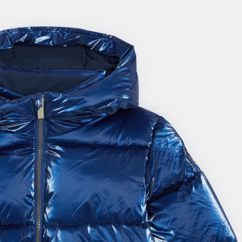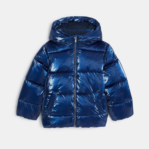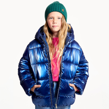 سترة منفوخة مبطنة للتدفئة ذات تأثير معدني باللون الأزرق للفتيات