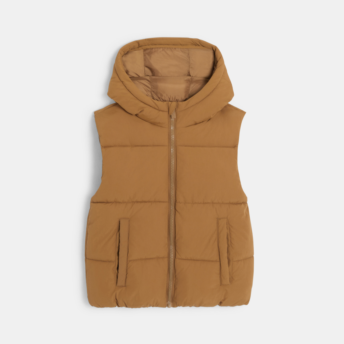 سترة خفيفة بدون أكمام باللون البني الفاتح للأولاد.