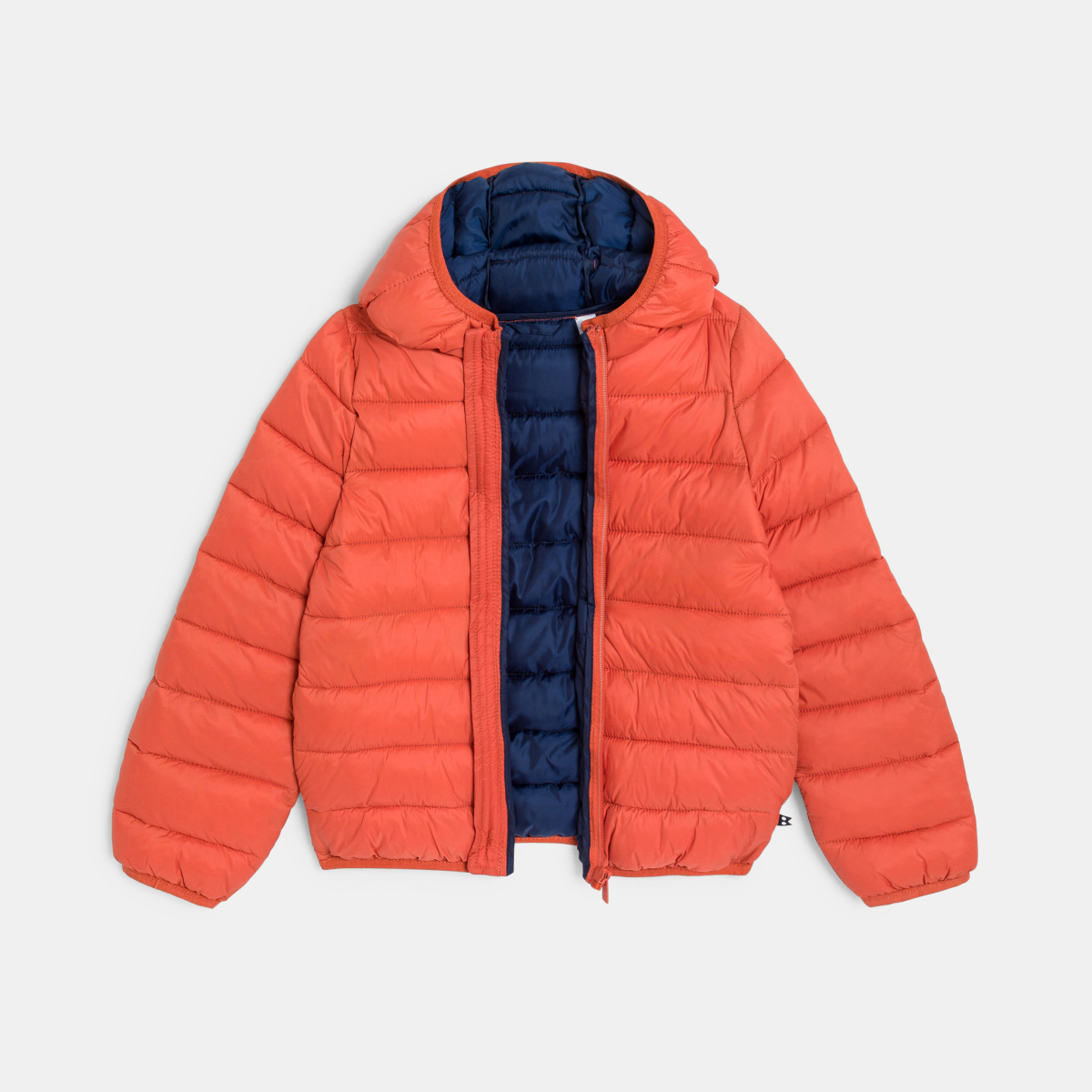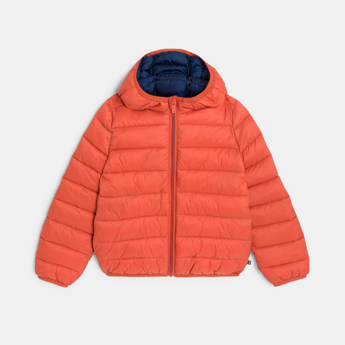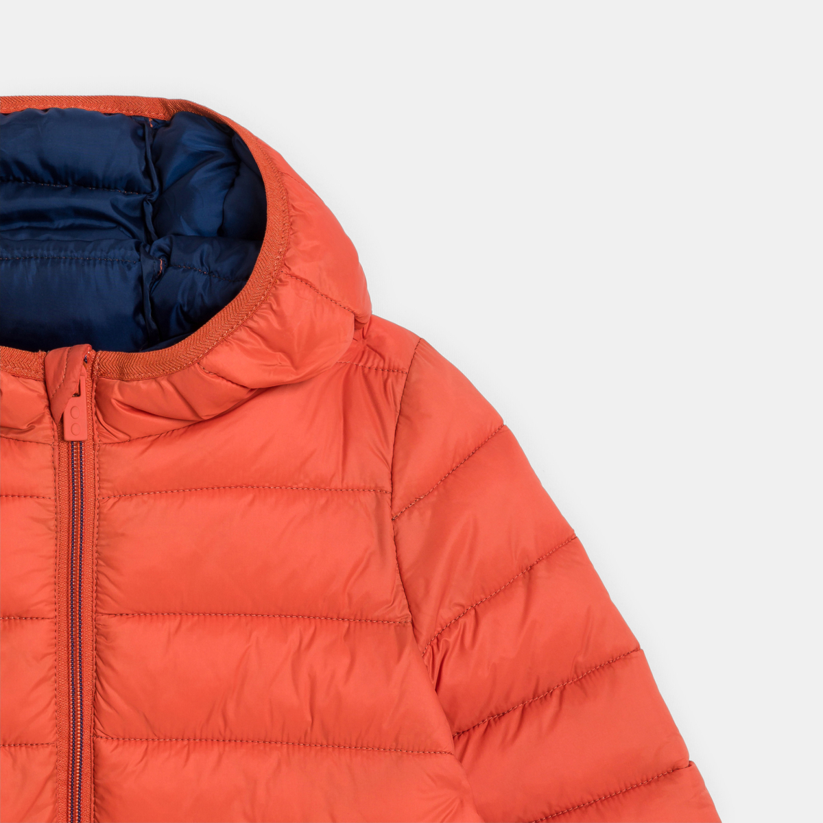 سترة منفوخة مبطنة بغطاء للرأس باللون البرتقالي للأولاد