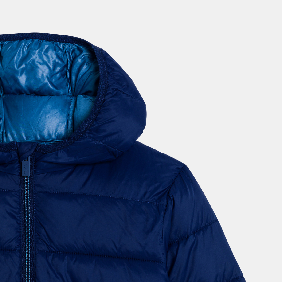 سُترة باللون الأزرق وبتصميم مُبطن وقصّة مضبوطة على مقاس الجسم، وهي من القطع التي لا غنى عنها في خزانة ملابس الفتيان. مُصممة بقماش طارد للماء وواقي من العوامل الجوية. مزودة بغطاء للرأس مُدمج ويتم إقفاله بسحّاب، وهة سهل الارتداء. سترة مثالية لارتداءها في الحياة اليومية، فالشعور بالراحة والدفء مستديم عند ارتداءها بفضل نعومة بطانتها.