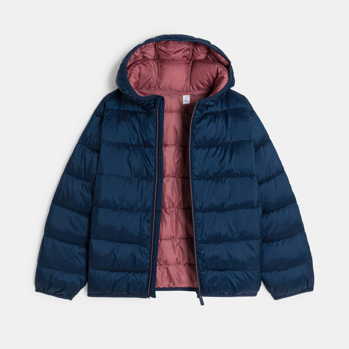 سترة منفوخة بغطاء رأس سادة، اللون أزرق داكن، للفتيات