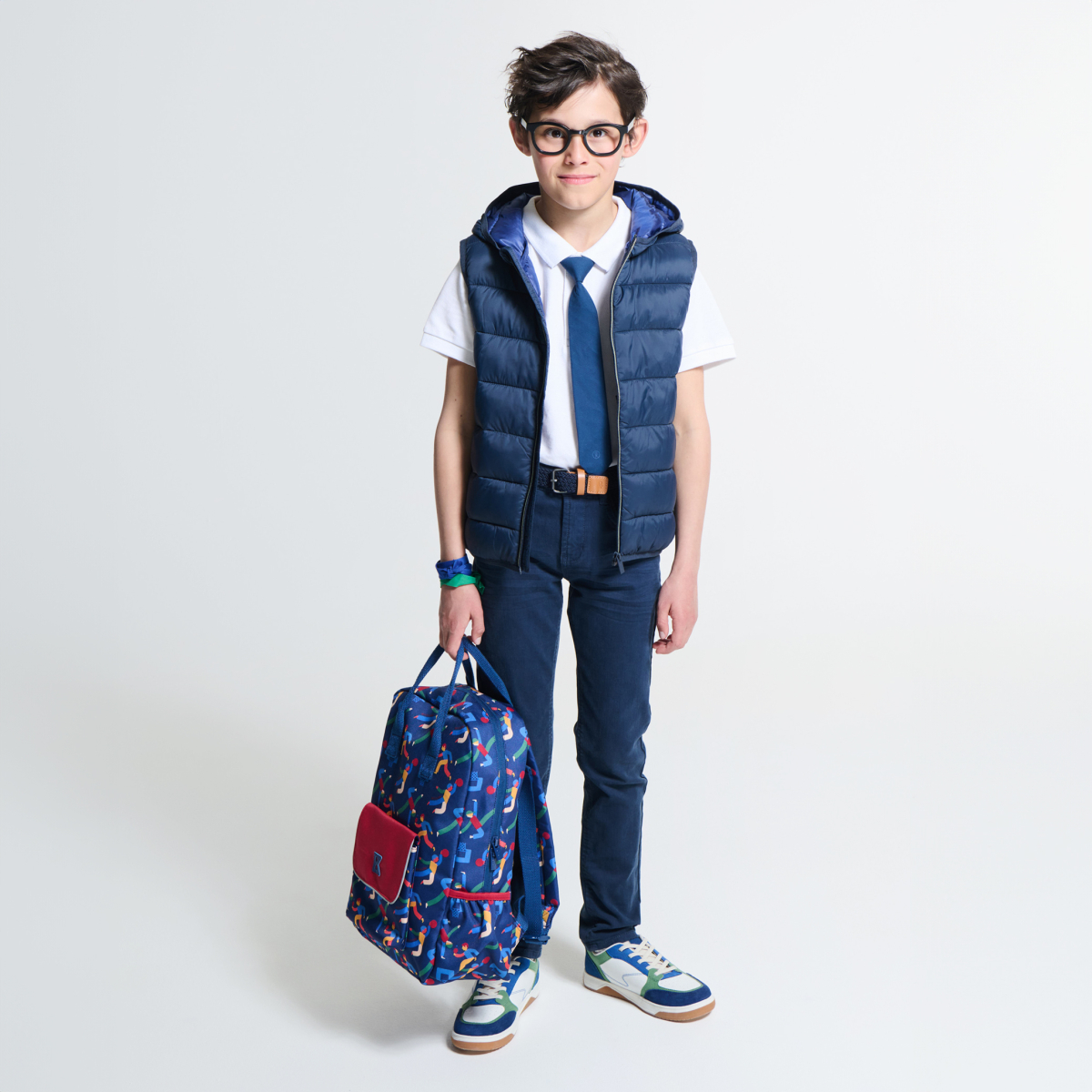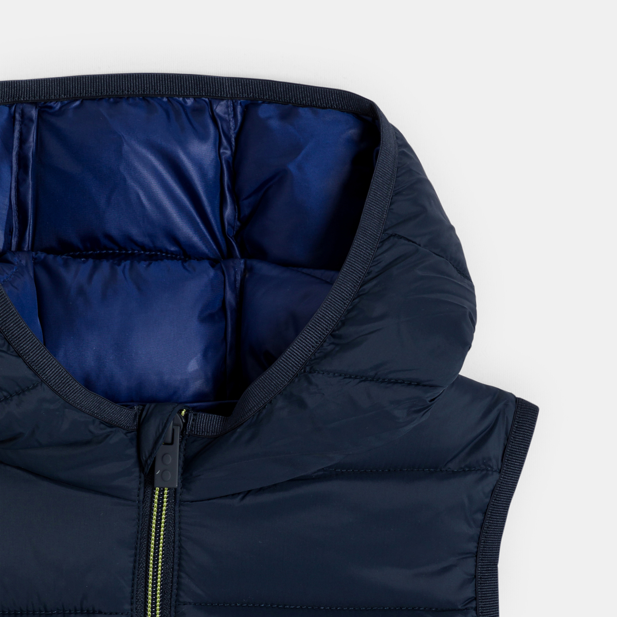 عملي. ضرورية. تدوم هذه السترة الخفيفة بدون أكمام لكل الفصول. غطاء الرأس مُبطَّن ياقة دائرية عالية. فتحة بسحاب مع غطاء حماية. أكمام بتقويرة هالتر الحافة السفلية مستقيمة. حواف مطاطية وتشطيب لون على لون.