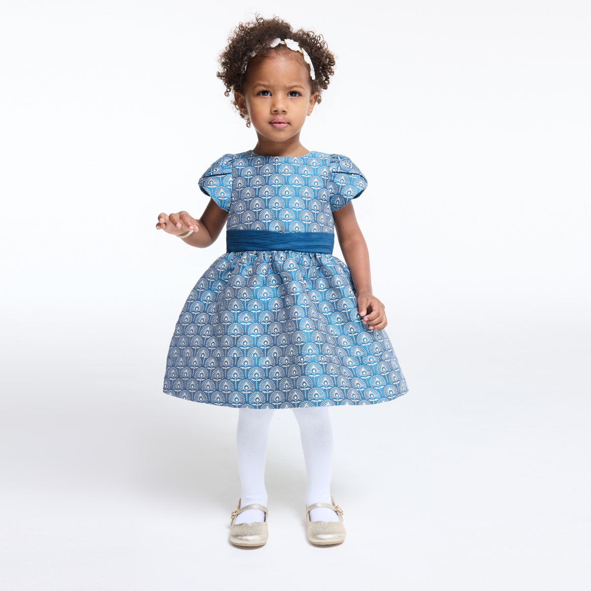 فستان حفلات لامع، أنيق، أزرق للقتيات الصغيرات