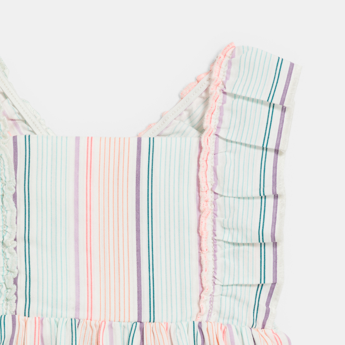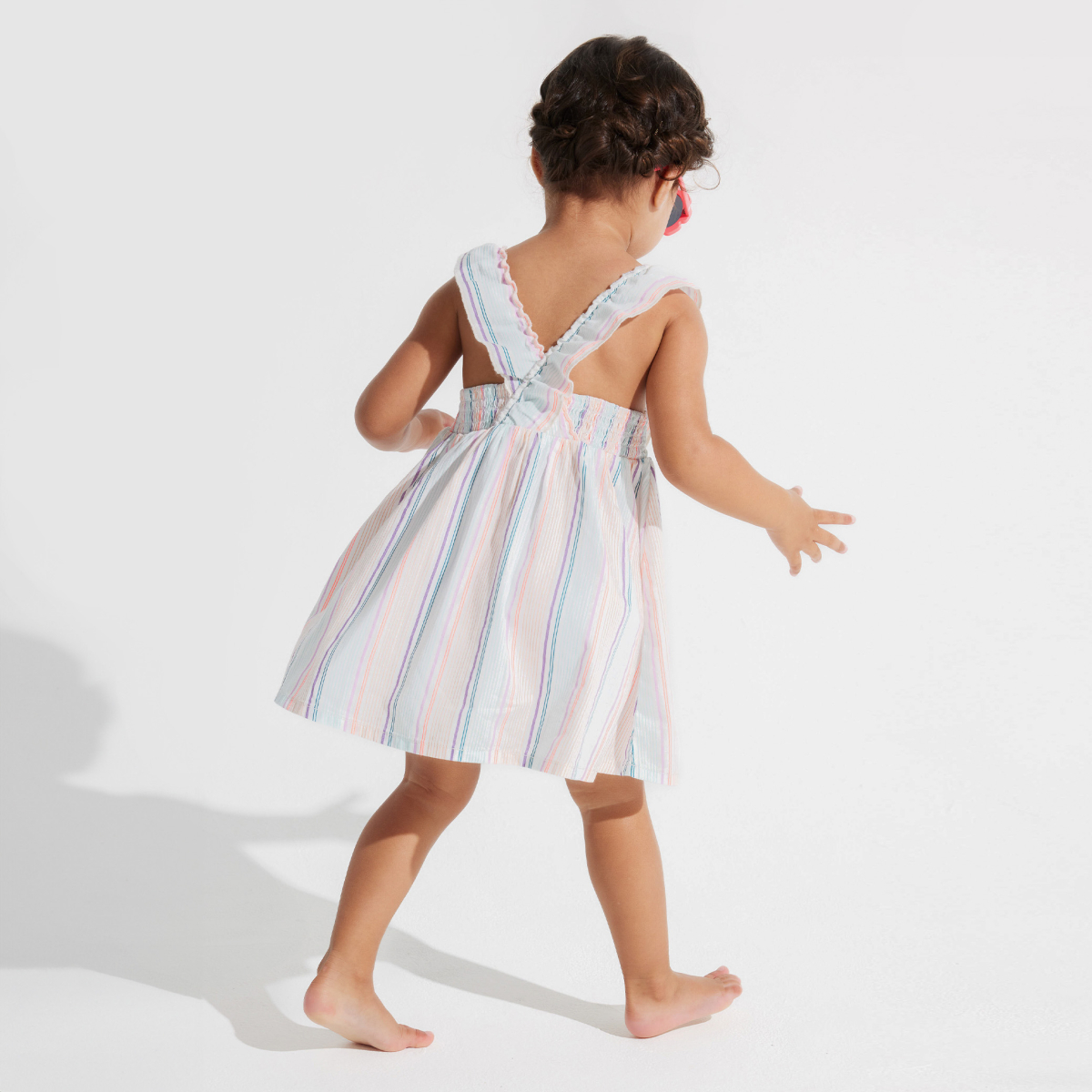 فستان مخطط بأشرطة كتف متعدد الألوان للفتيات الصغيرات