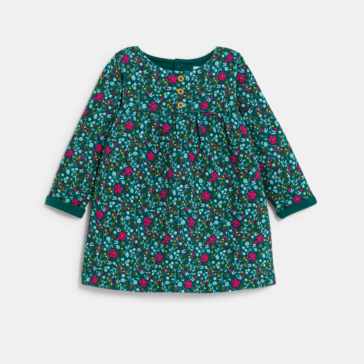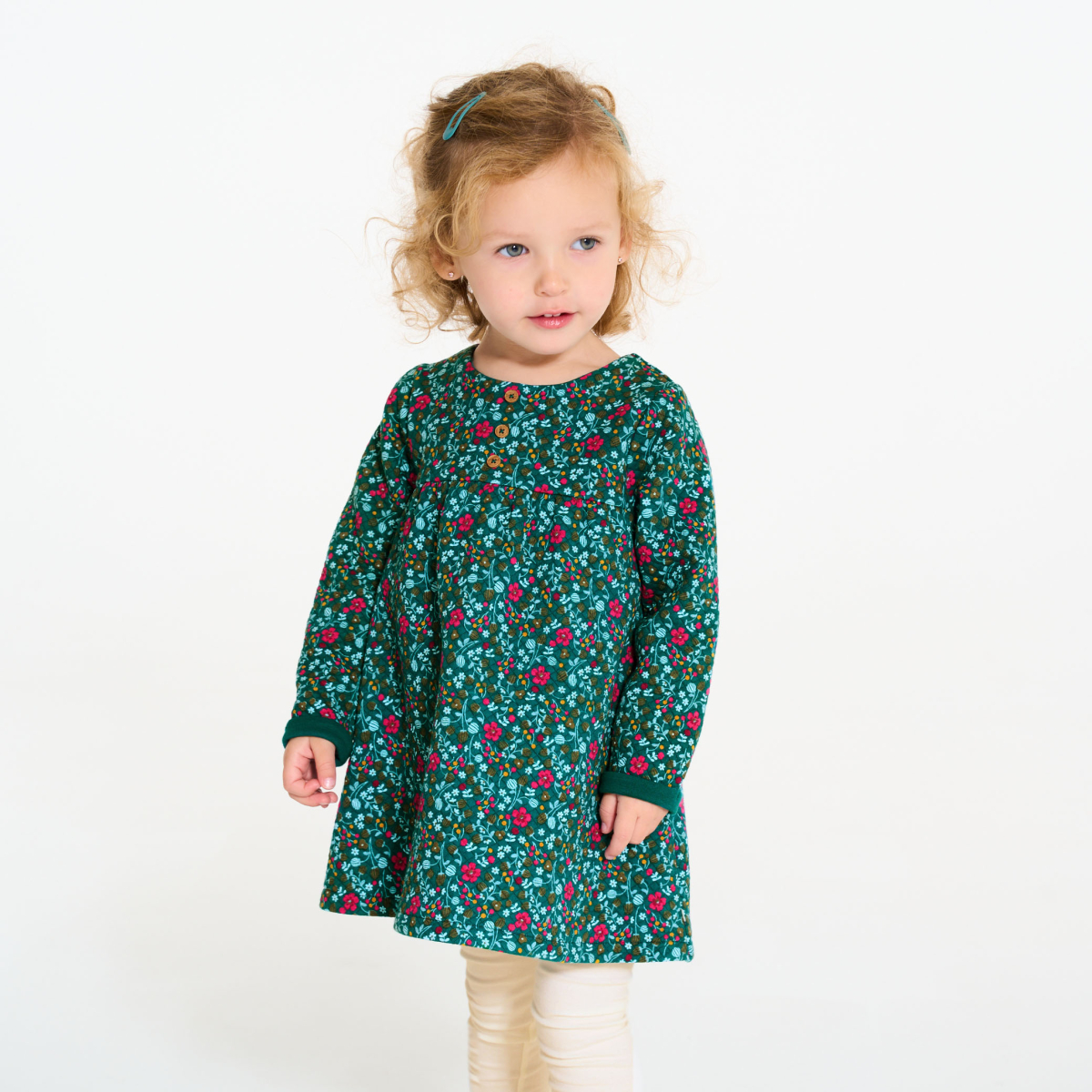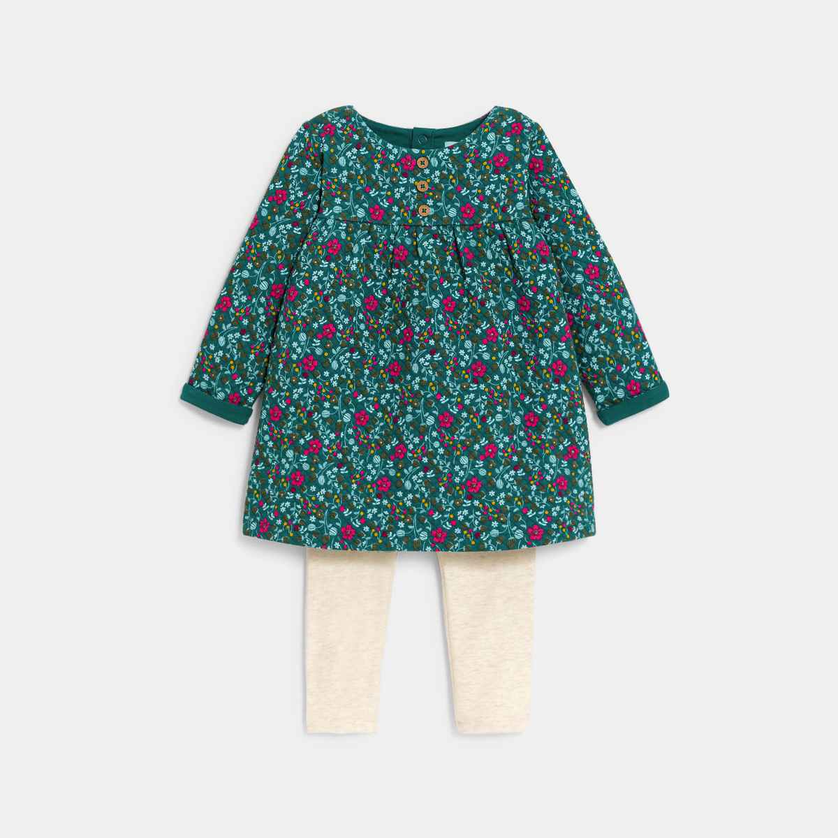فستان طفلة رضيعة مبطن عليه صورة ورود وبنطلون ليجينز أخضر