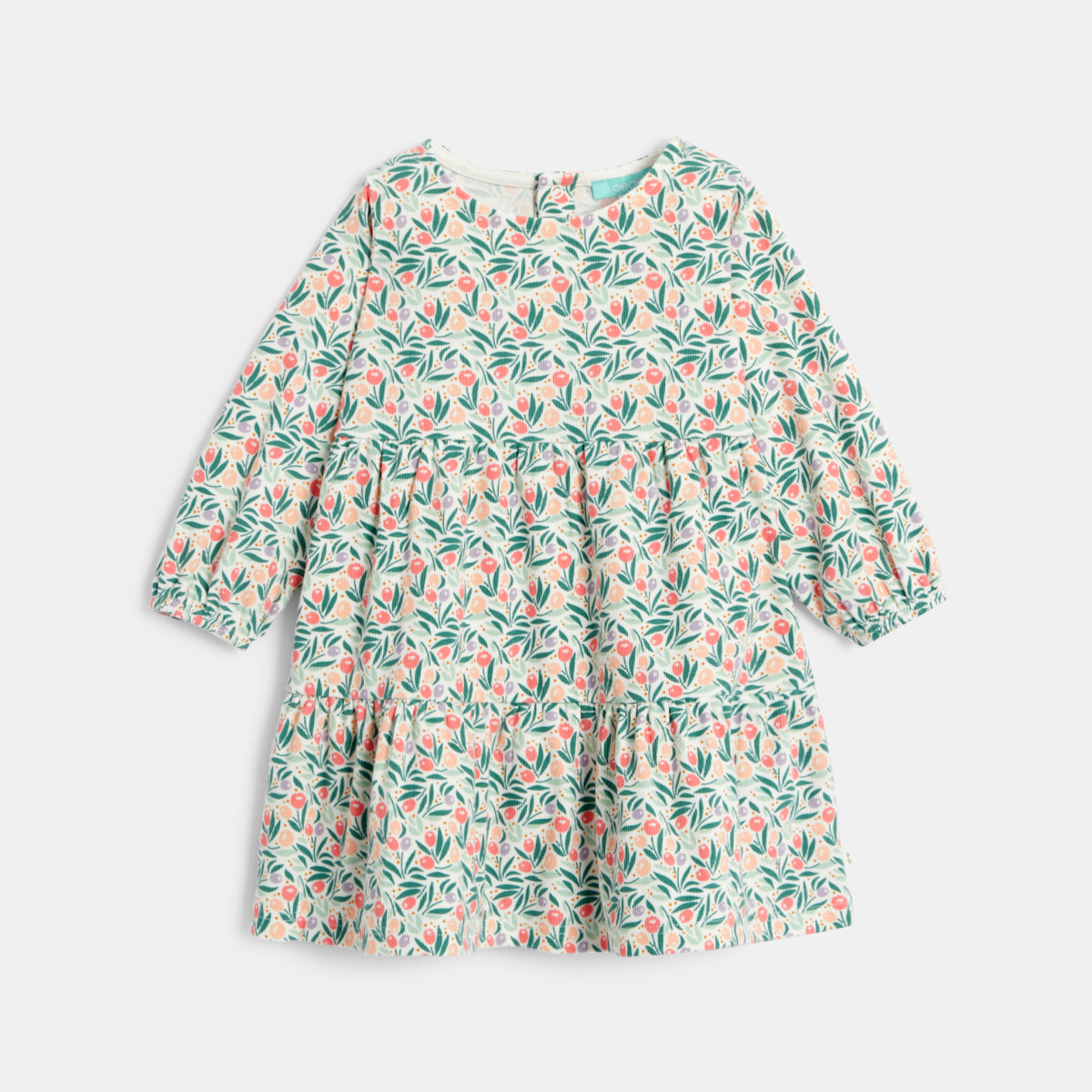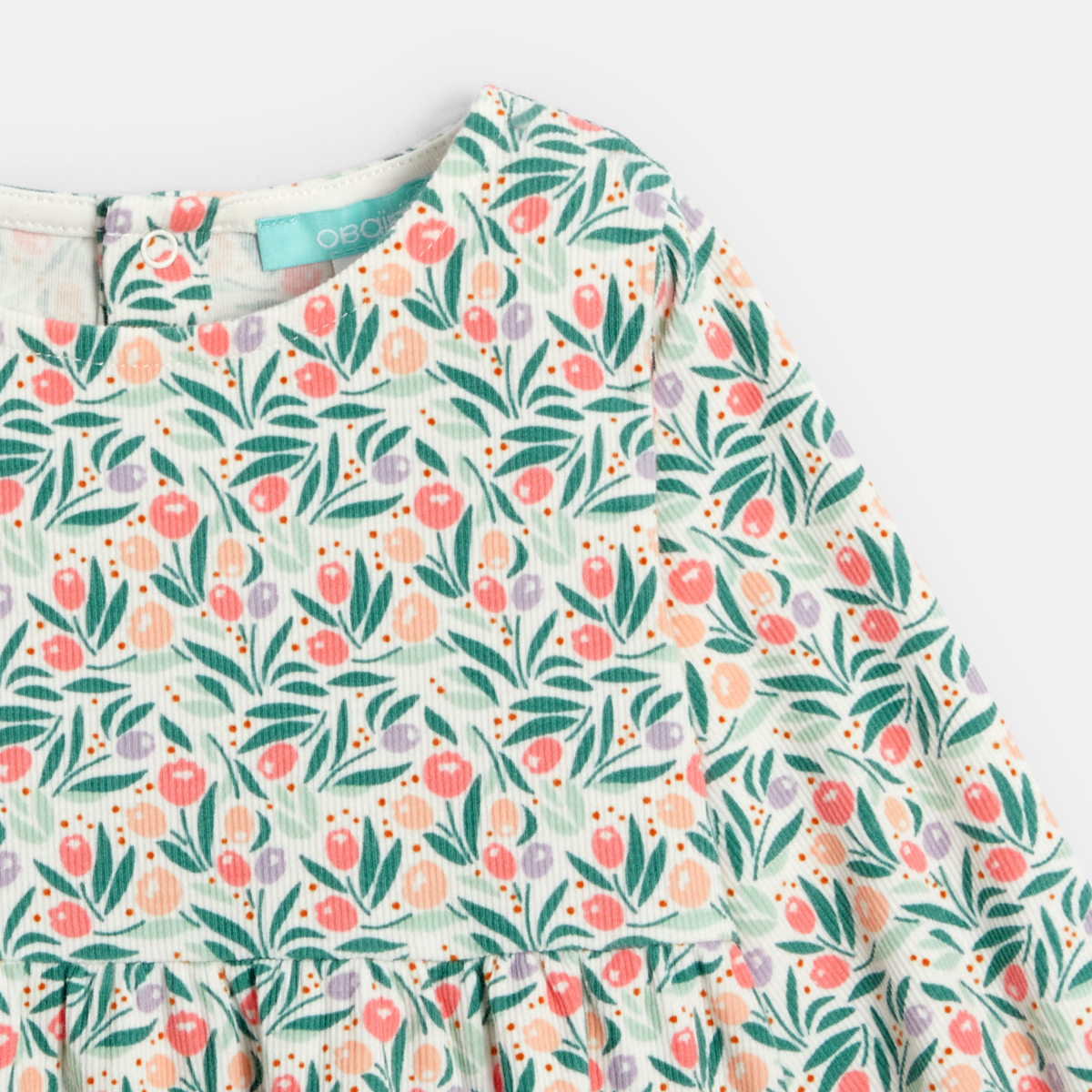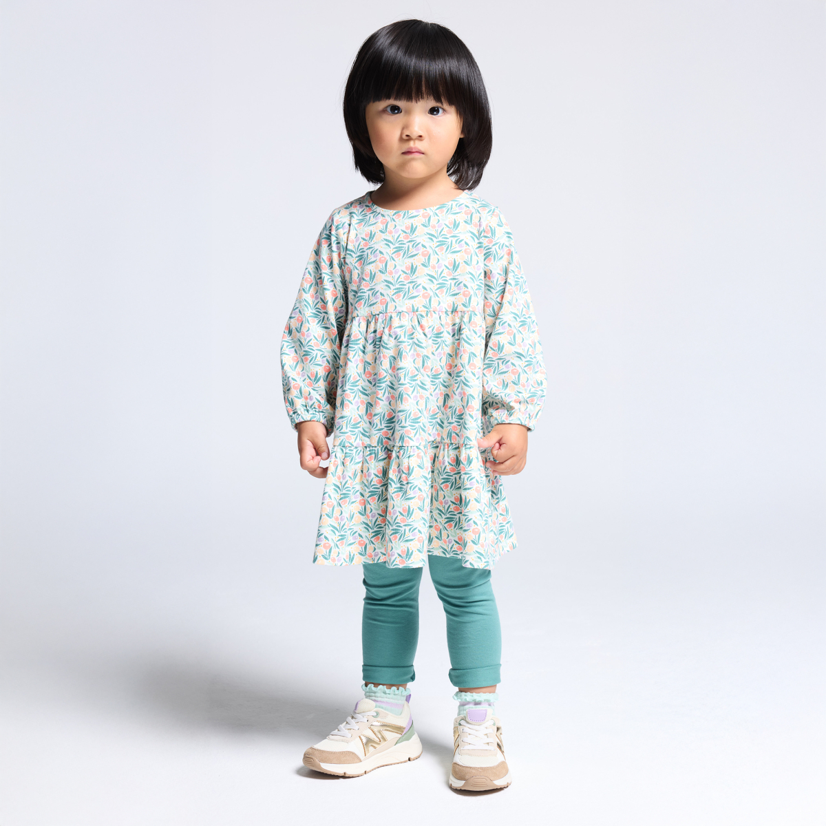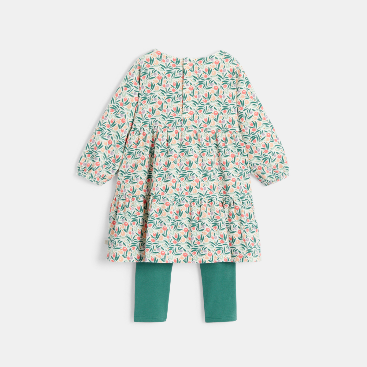 فستان انسيابي برسوم أزهار وطماق باللون الأخضر للفتيات الصغيرات