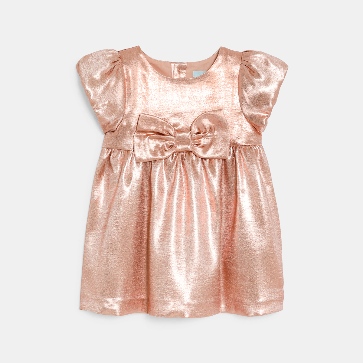 تصبح الفتيات ملكات الحفل مع هذا الفستان الذي يجعل أعينهن تتألق! فستان من قماش لامع وقصة أنيقة وأكمام قصيرة الخصر مزود بربطة فاخرة. الإغلاق بأزرار على الظهر.