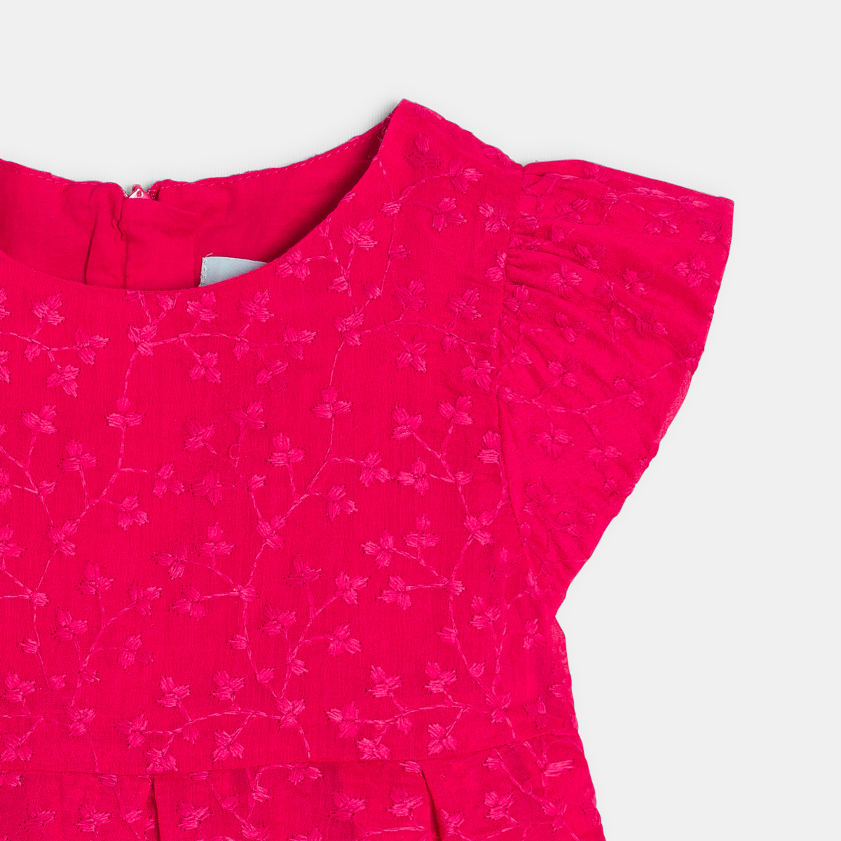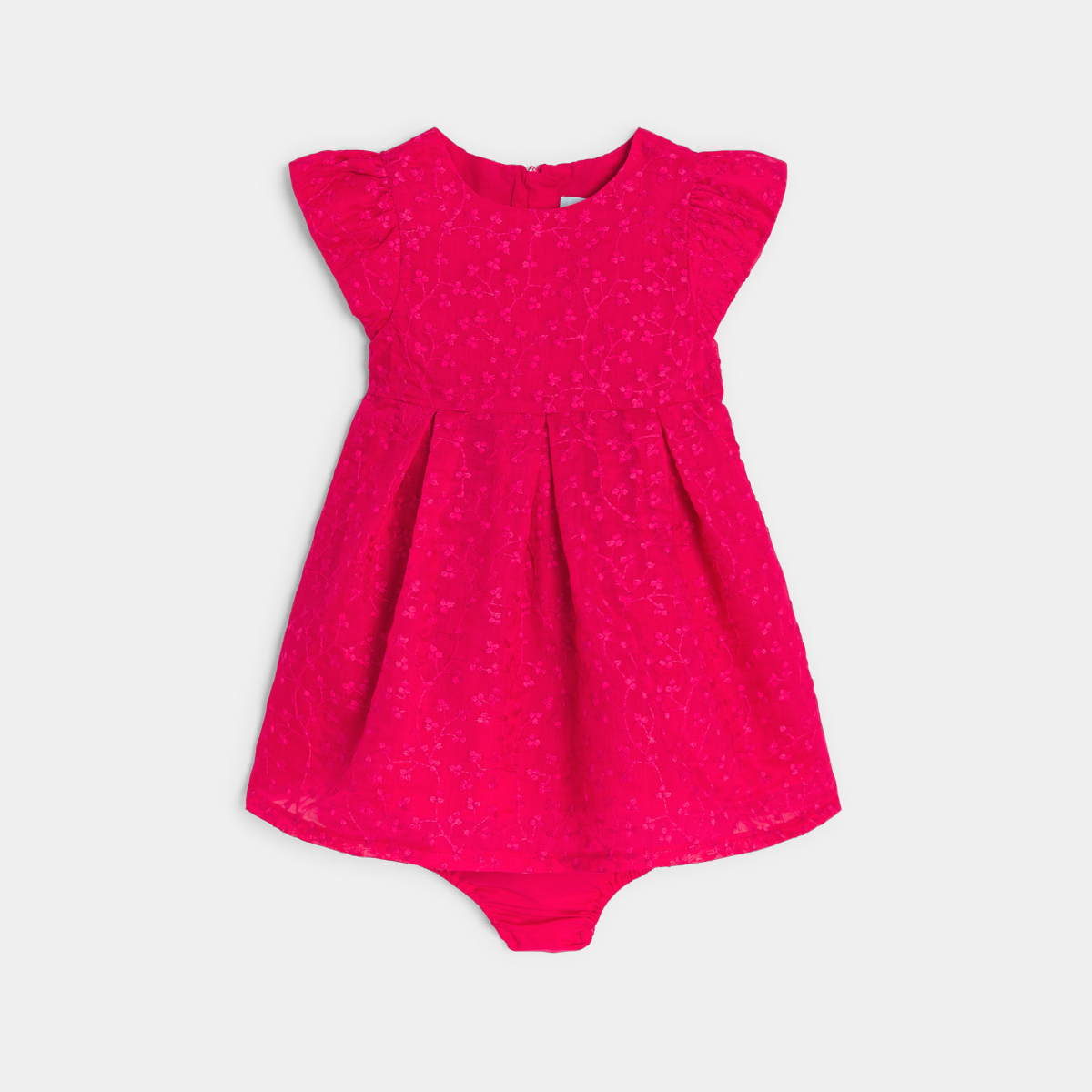 هذا هو الفستان المفضل لدى الفتيات: لون وردي بلون شراب توت العليق الشهي من أجل الاحتفالات الأنيقة! تصميم بأكمام قصيرة منثنية لمزيج من الأناقة والراحة، وقطن مطرز بتطريزات رقيقة. سروال من سن 3 إلى 23 شهرًا. الفتح عن طريق سحاب على الظهر.