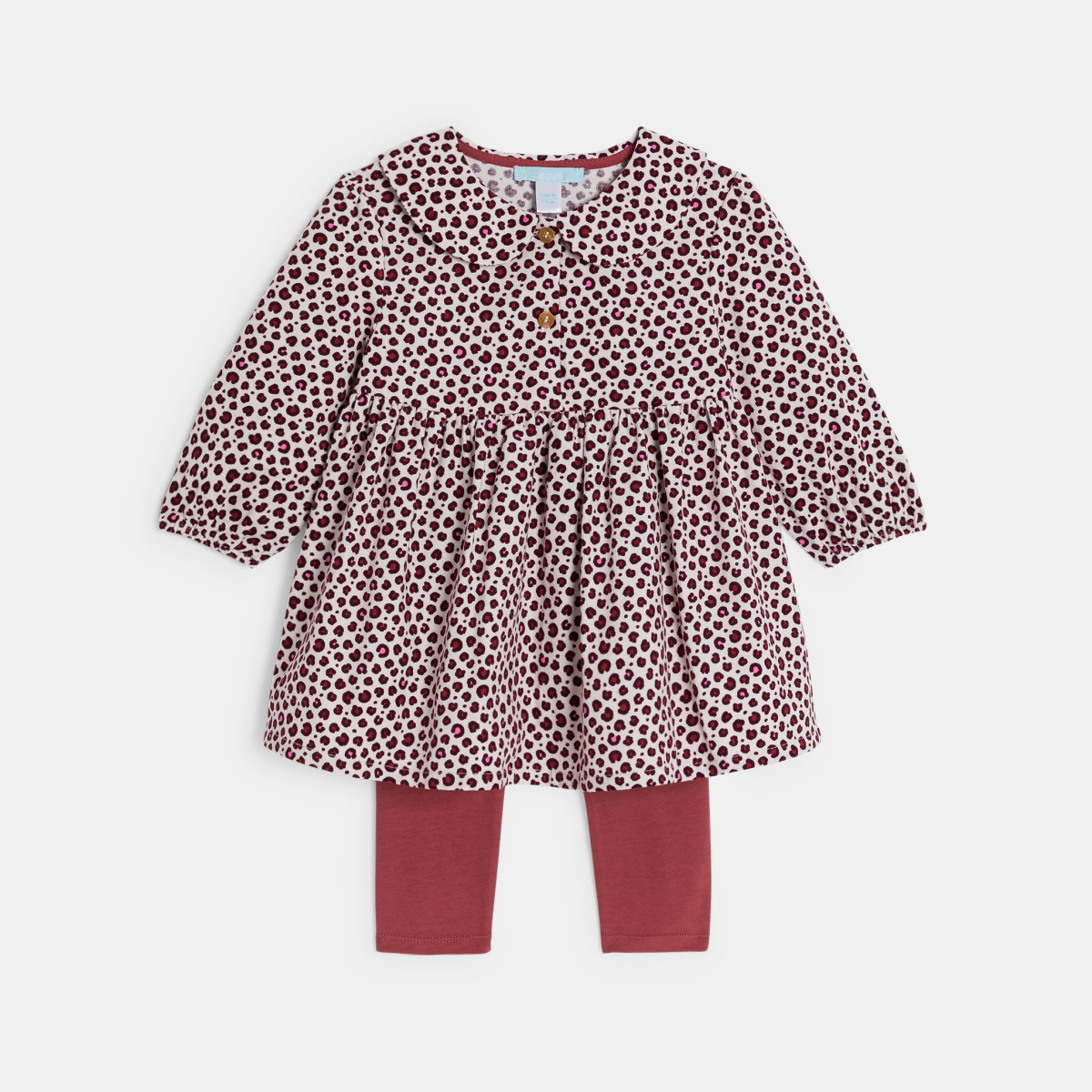 فستان مطبوع عليه صورة فهد وبنطلون ليجنز بوردو للطفلة الصغيرة