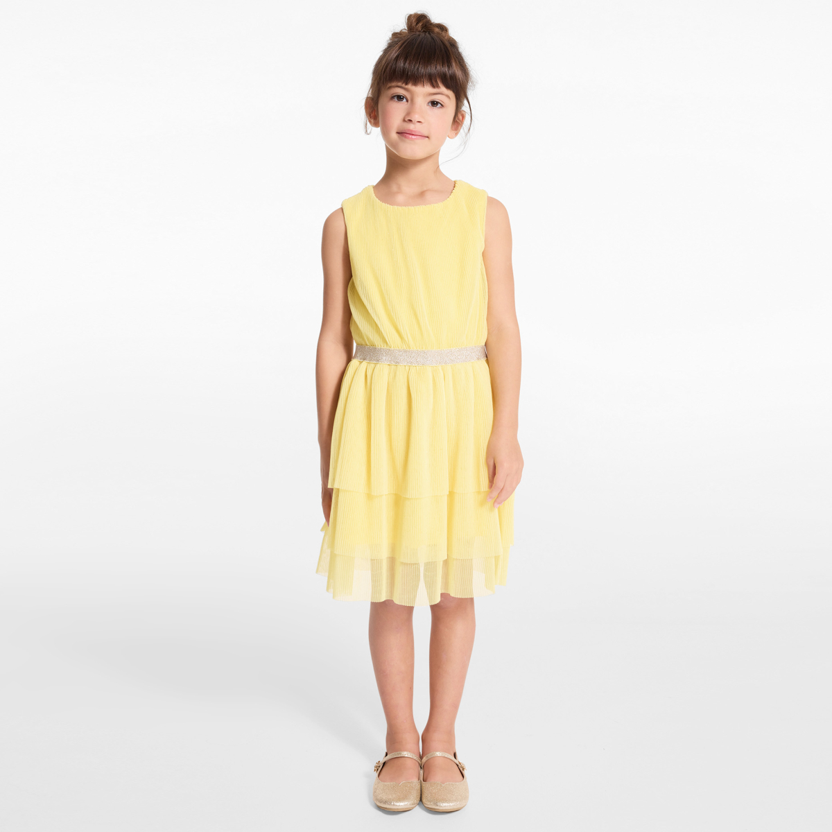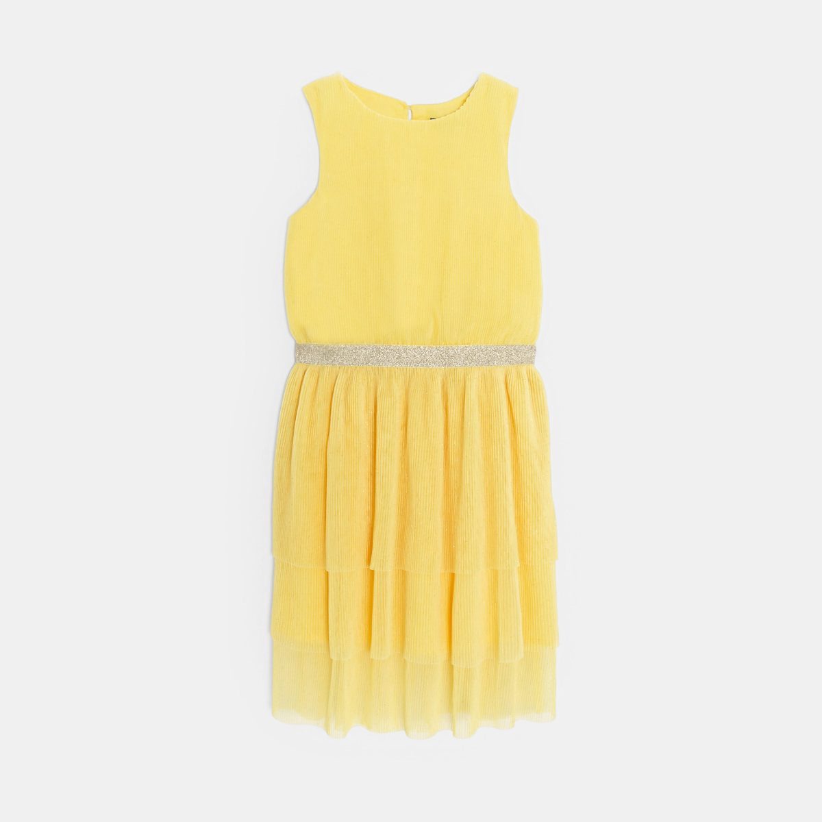 فستان أصفر مزين بالترتر بدون أكمام للفتيات