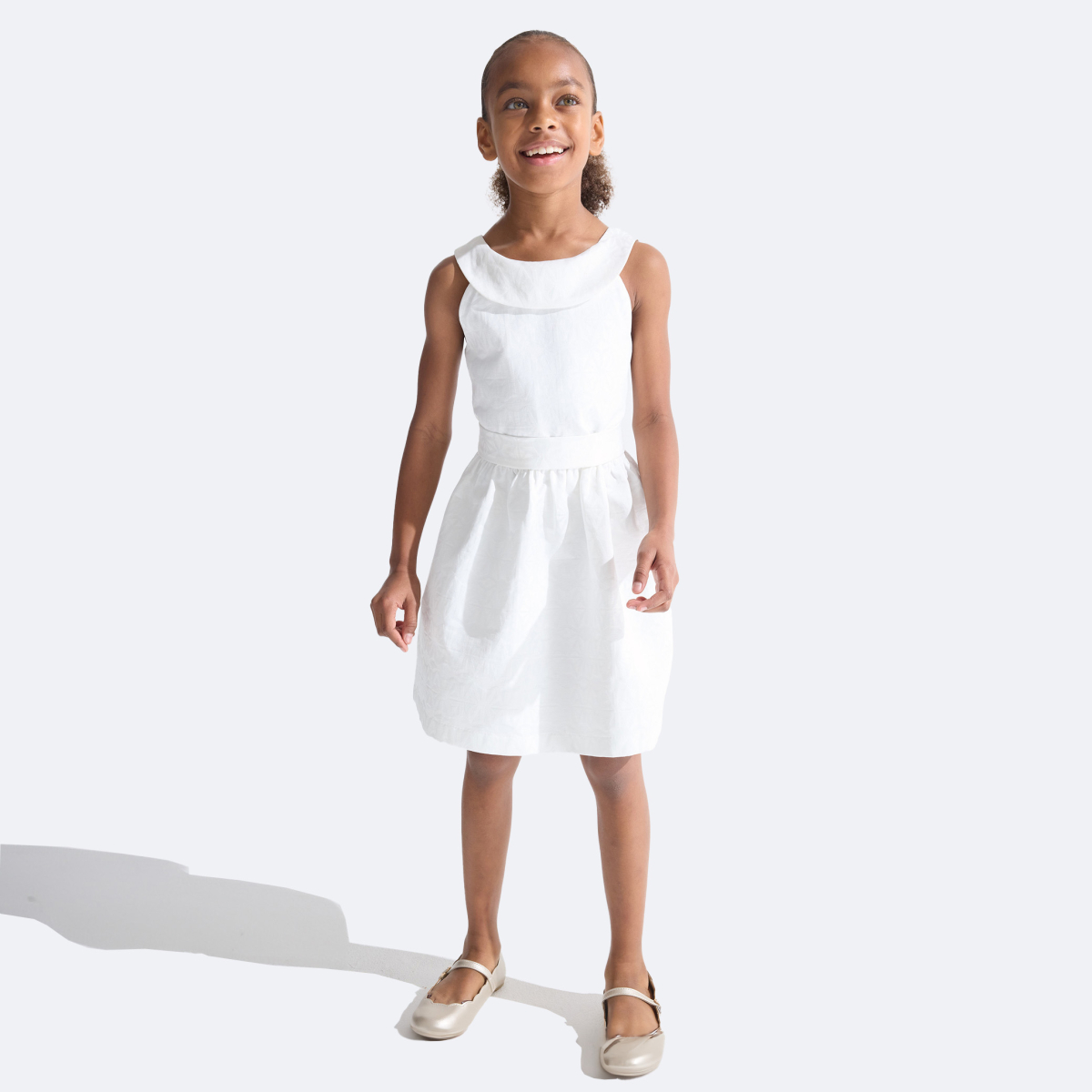 فستان أنيق برسمة من الجاكار، باللون الأبيض للفتيات