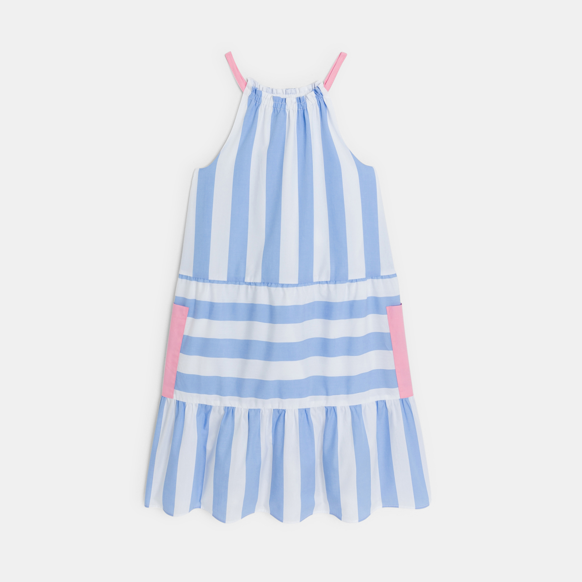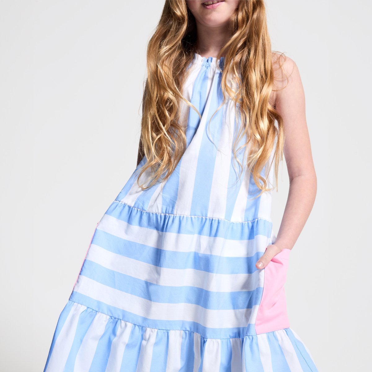 فستان مقلم من قماش البوبلين بحمالات أزرق اللون للفتيات