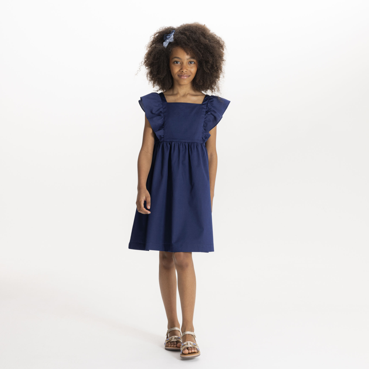 وصفي هذا الفستان المصنوع من البوبلين مع لمعة الساتان أنيق للغاية من أجل اليوم الموعود، وهو جميل أيضًا لحفلات أعياد الميلاد. مواكب للموضة تمامًا مع أكمام الكاب المكشكشة. نتخيله مع حذاء باليه أو صندل ذهبي على سبيل المثال. ياقة مربعة من الأمام مع شكل V من الخلف، وسحاب غير مرئي لسهولة الارتداء.