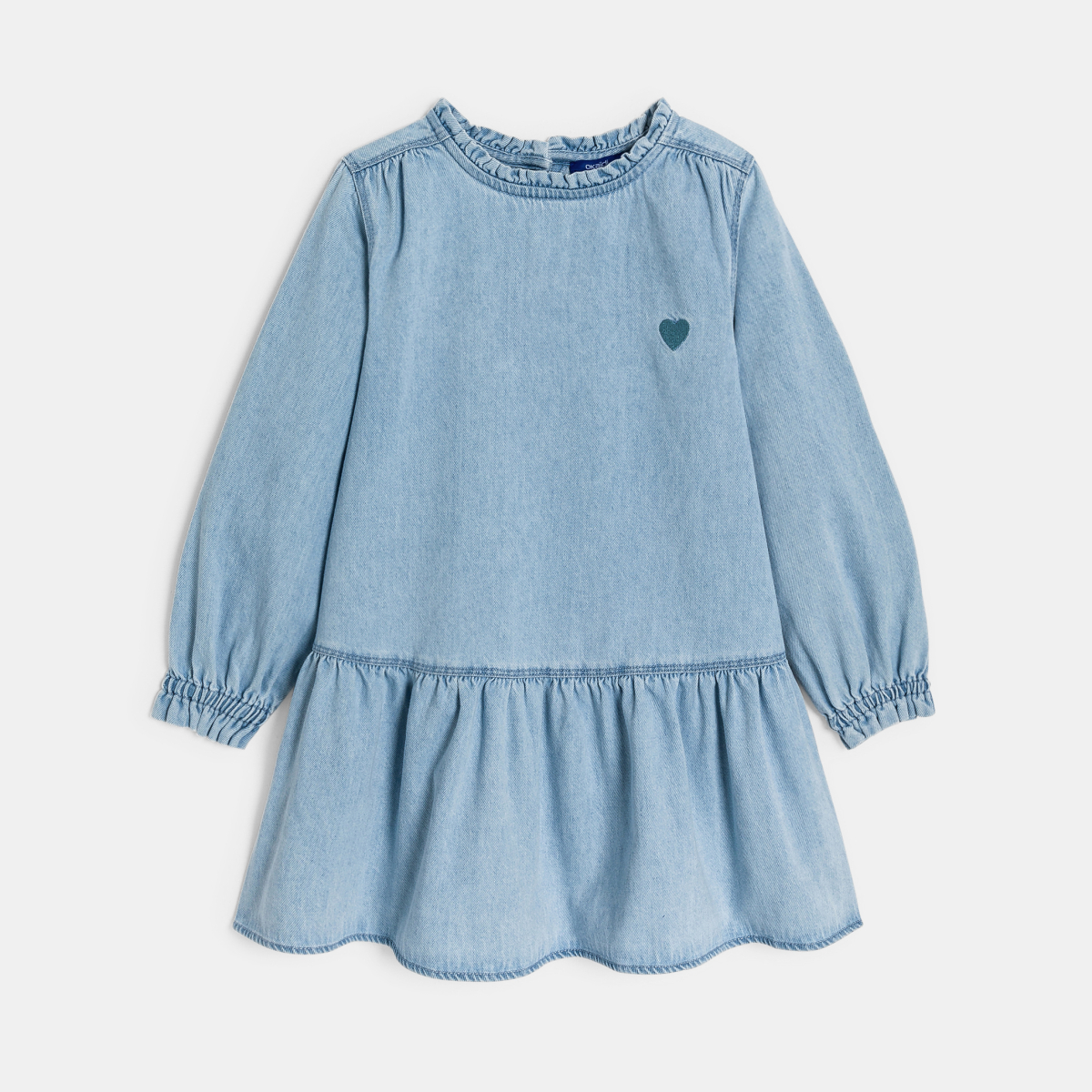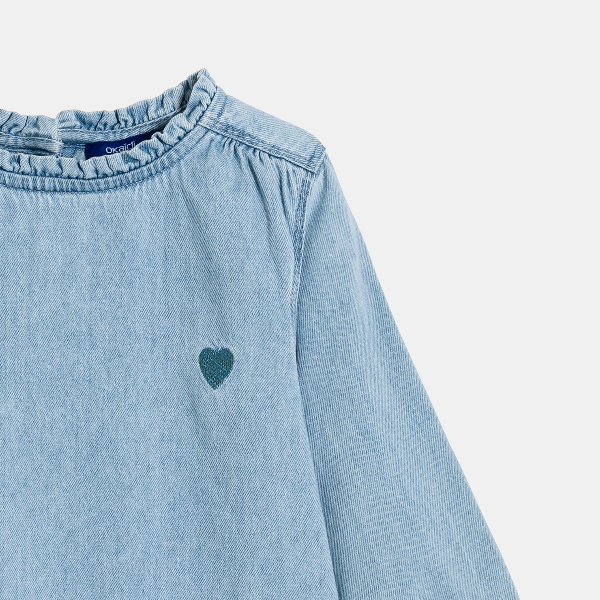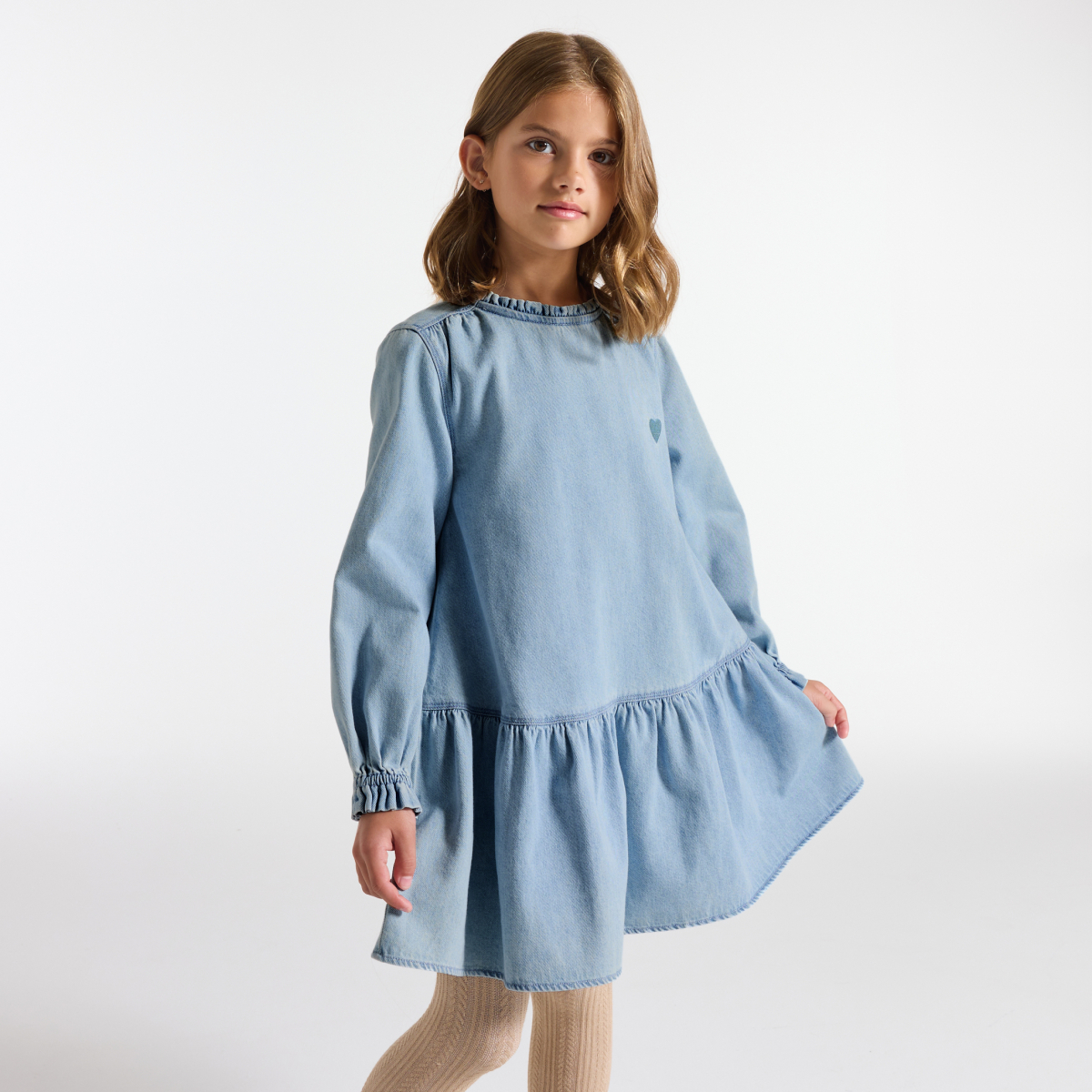 فستان قصير من الجينز الفاتح للفتيات بتطريز قلب، أزرق اللون