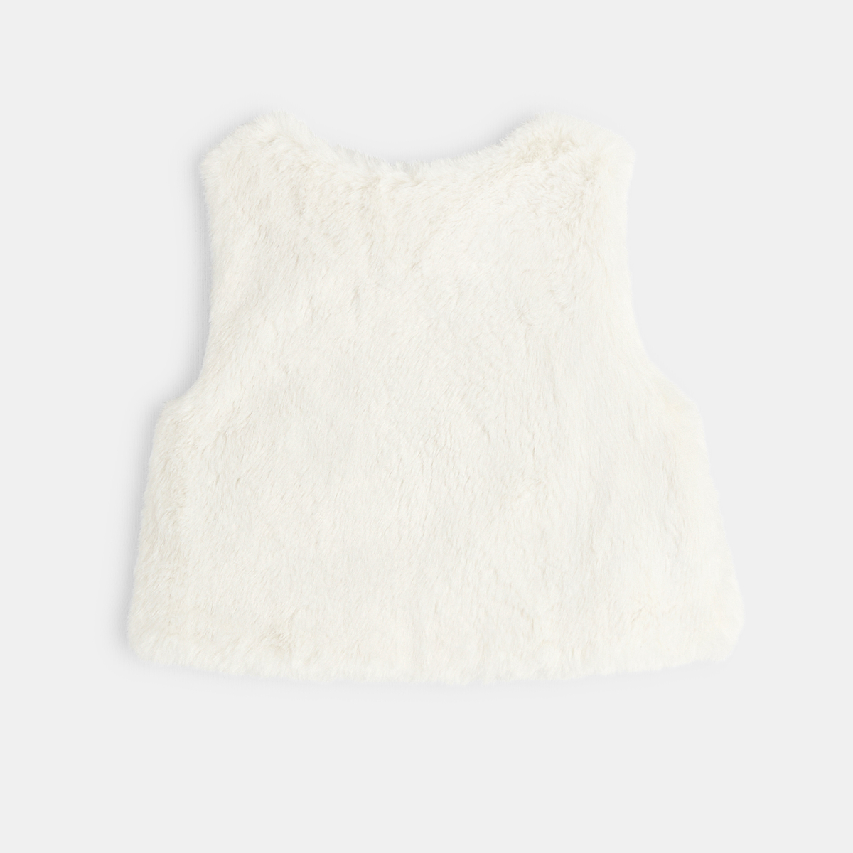 وصفي مصنوعة من الفرو الصناعي فائق النعومة، على شكل سترة بدون أكمام تضفي الدفء على مظهر جميع الفتيات. طباعة زهور على كامل التصميم الداخلي. إغلاق بالضغط.