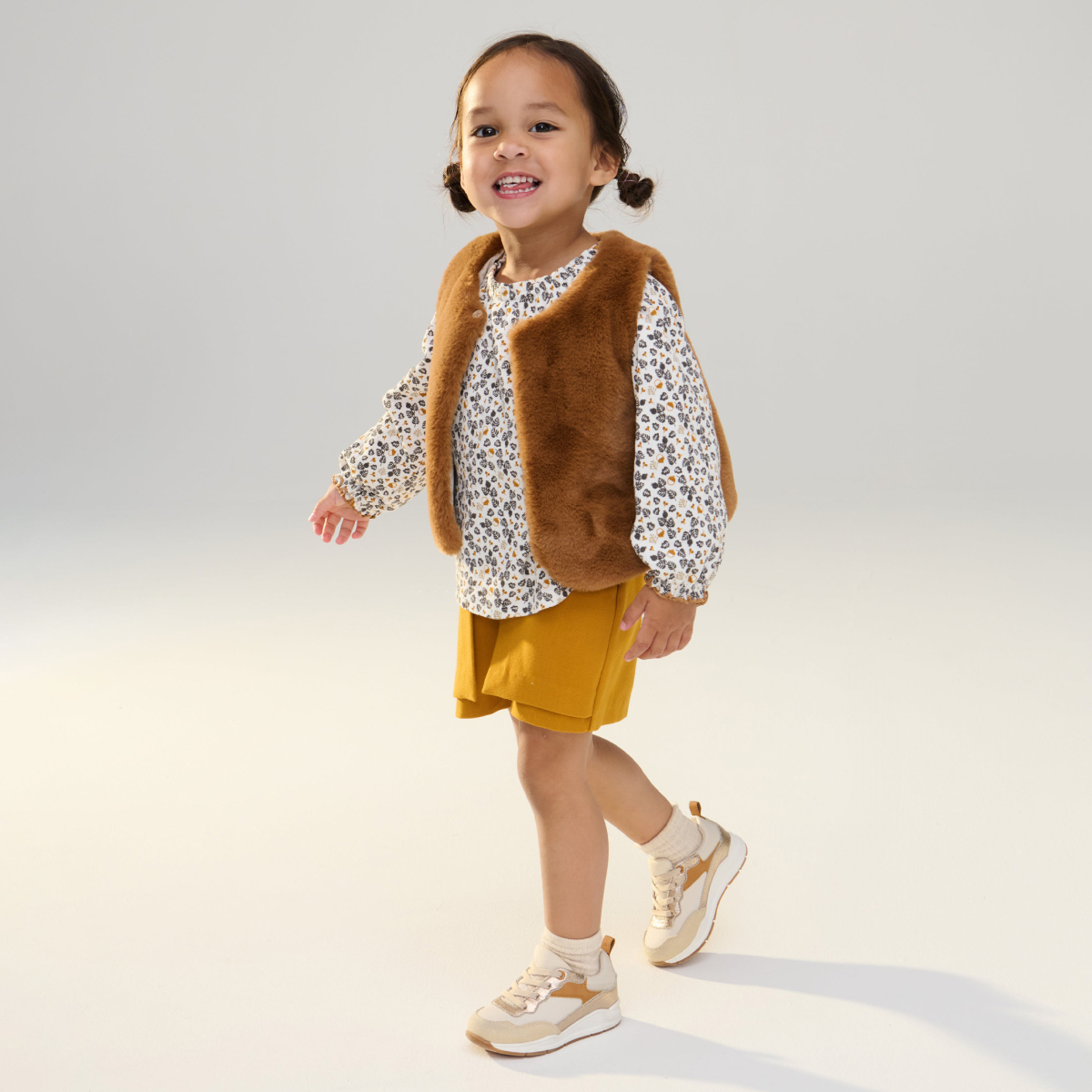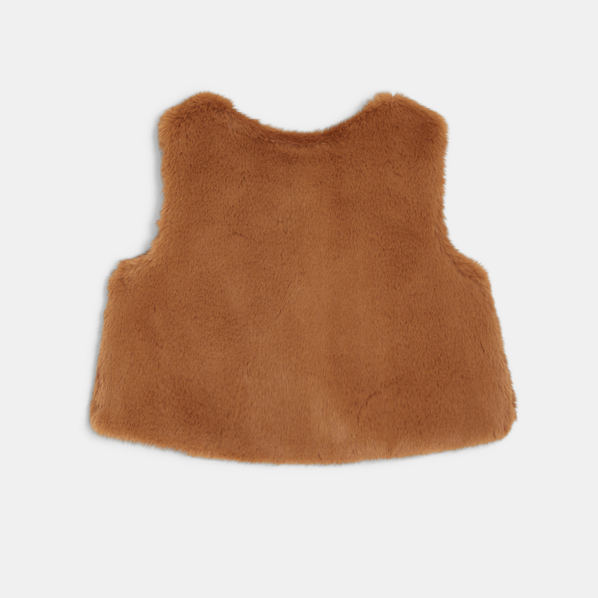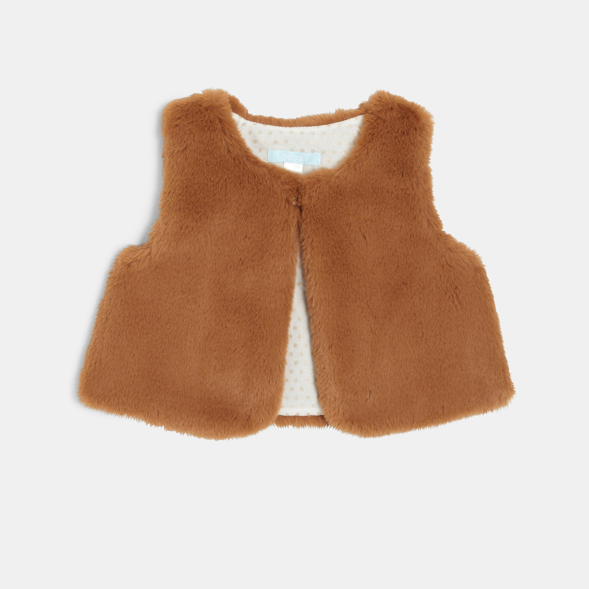 مصنوعة من الفرو الصناعي فائق النعومة، على شكل سترة بدون أكمام تضفي الدفء على مظهر جميع الفتيات. طباعة زهور على كامل التصميم الداخلي. إغلاق بالضغط.