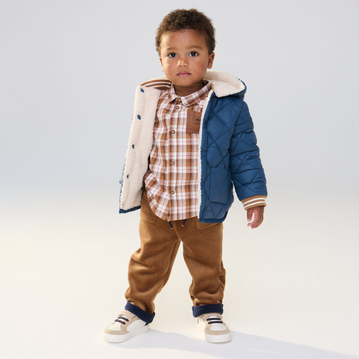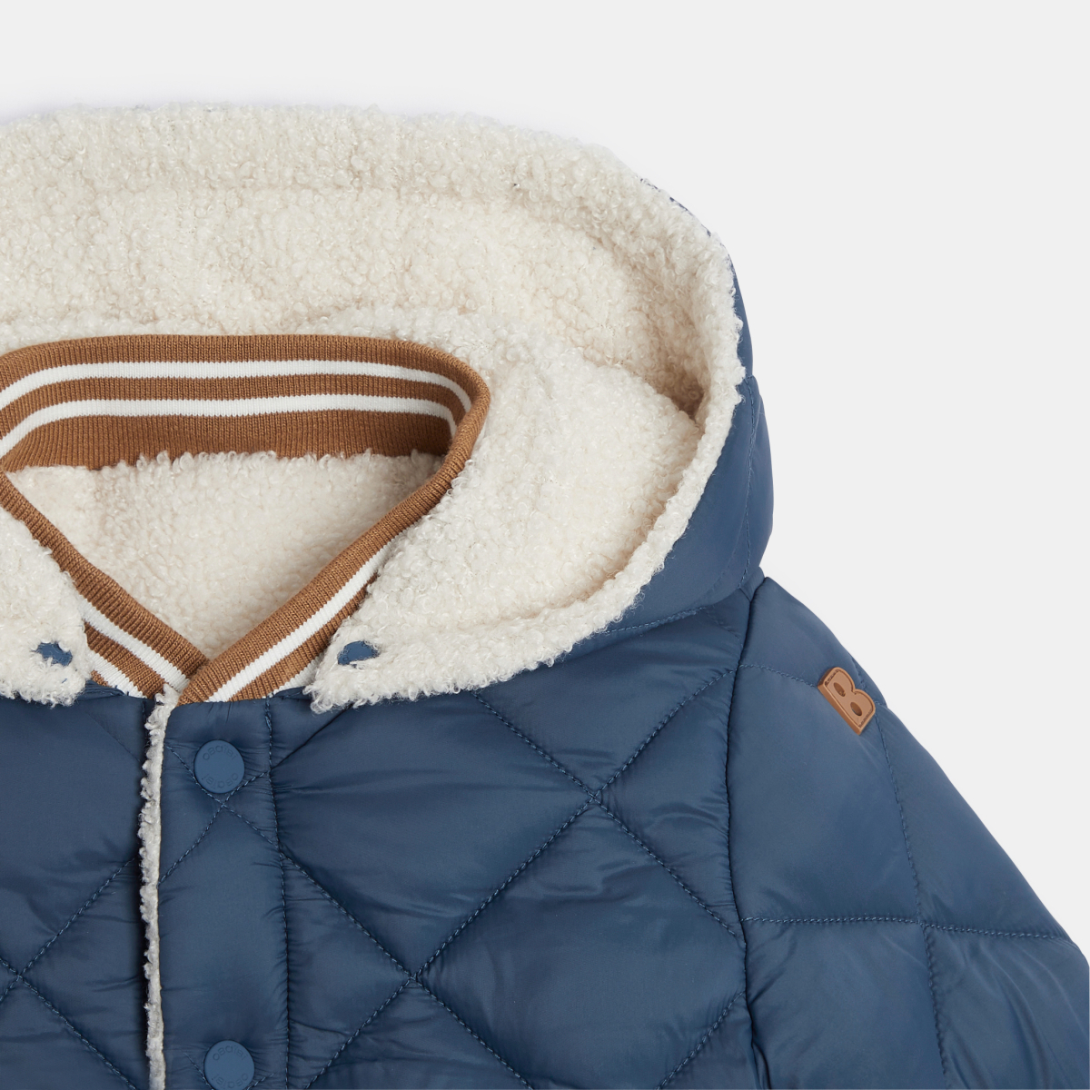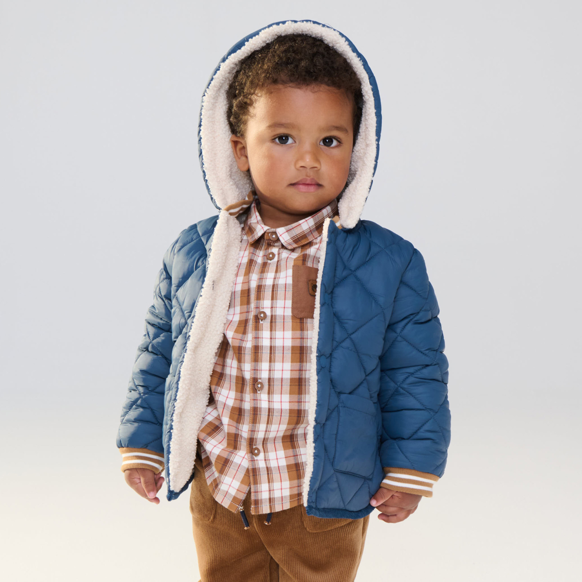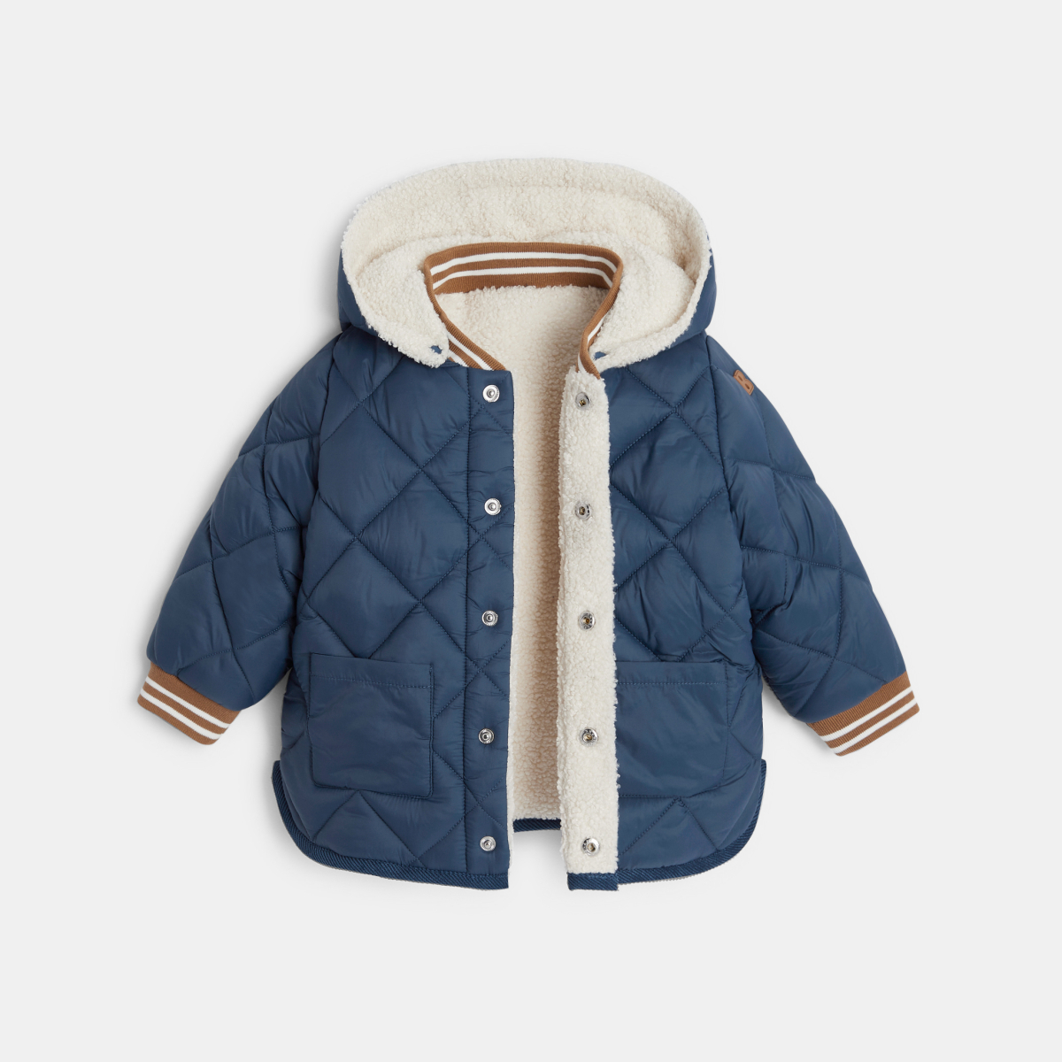 معطف باللون الأزرق للفتيان الرُضع، مُبطن بصوف الشيربا وذو وجهين