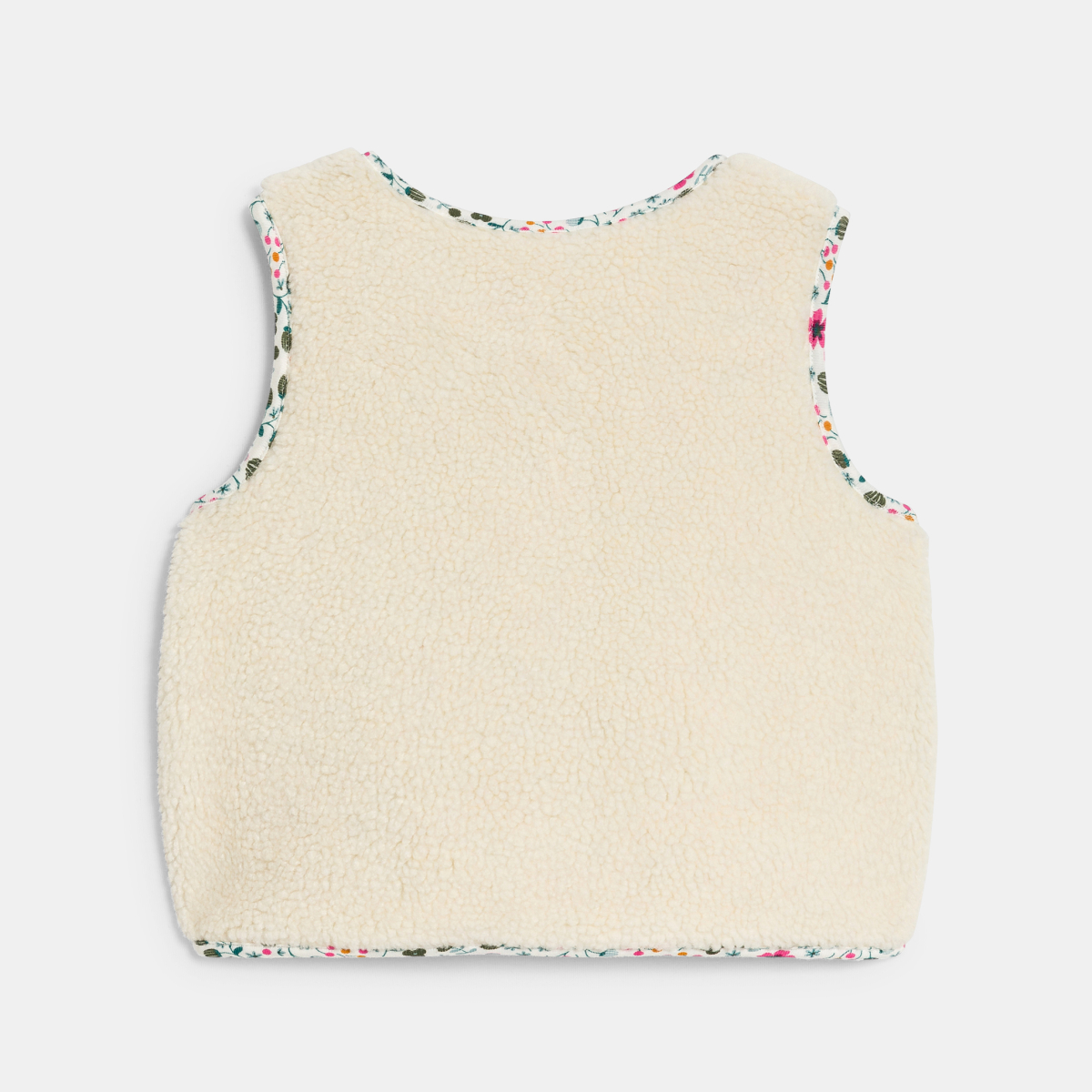 جيليه شيربا بدون أكمام وذو وجهين، مزركش برسوم أزهار باللون الأبيض للفتيات الصغيرات