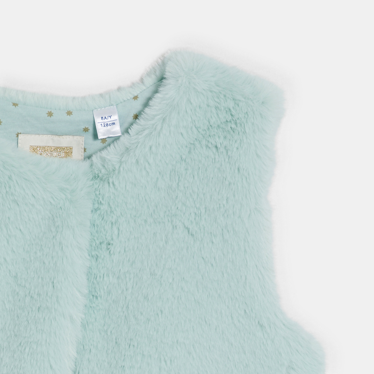رائعة. جذابة. أساسية. تتميز هذه السترة بدون أكمام من الفرو الصناعي بالنعومة الفائقة ومبطنة بقماش جيرسيه بلون على لون. تُغلِق بزرين كبس مخفيين تحت الرقبة المستديرة.