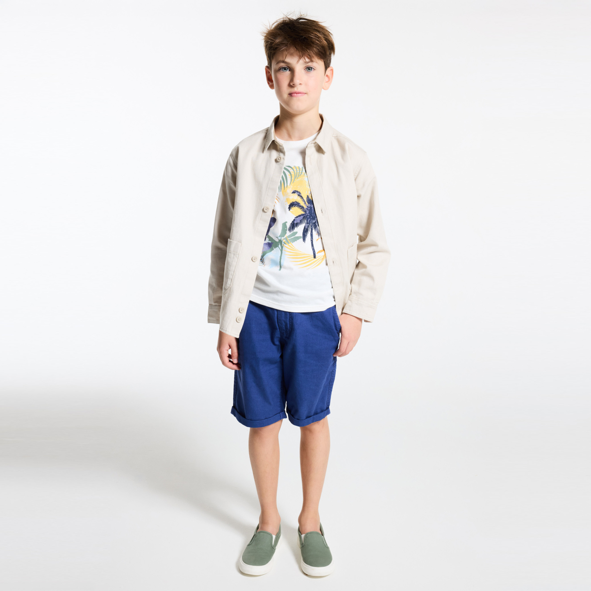 وصفي مفتوح على تي شيرت أو مغلق بأزرار على الأعلى: هذا القميص الفوقي هو حل وسط جيد في فترة ما بين الفصلين! يحب الأولاد أسلوبه السفاري. قصّة مستقيمة. ياقة قميص كلاسيكية. الفتح بأزرار. جيبان رقّعة. أكمام طويلة وأساور بأزرار. الحافة السفلية مستديرة.