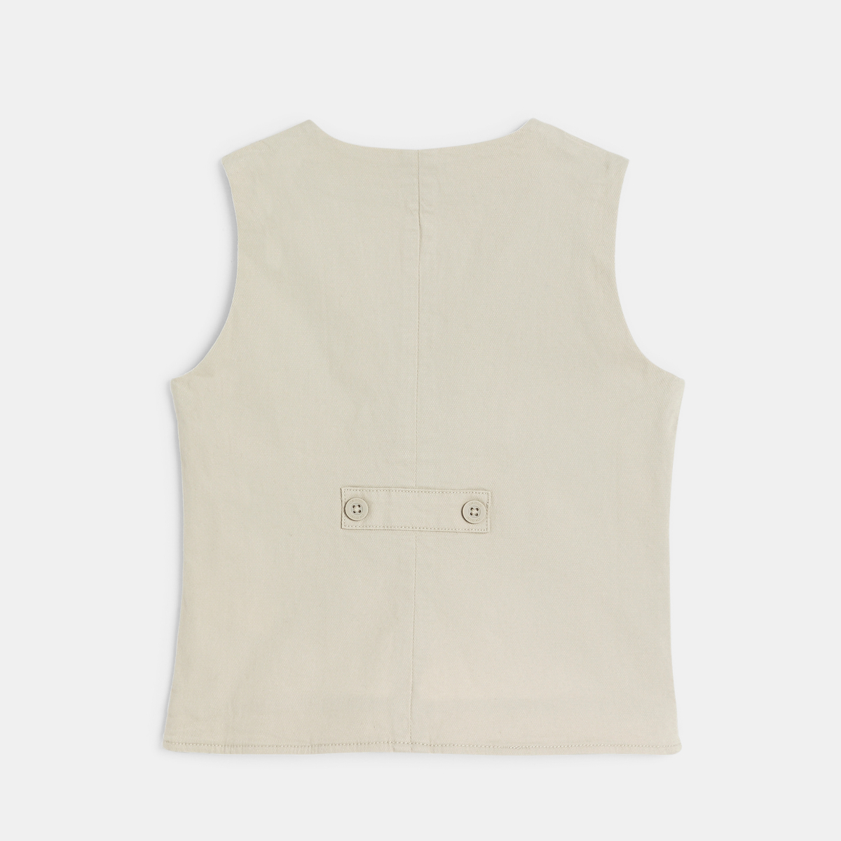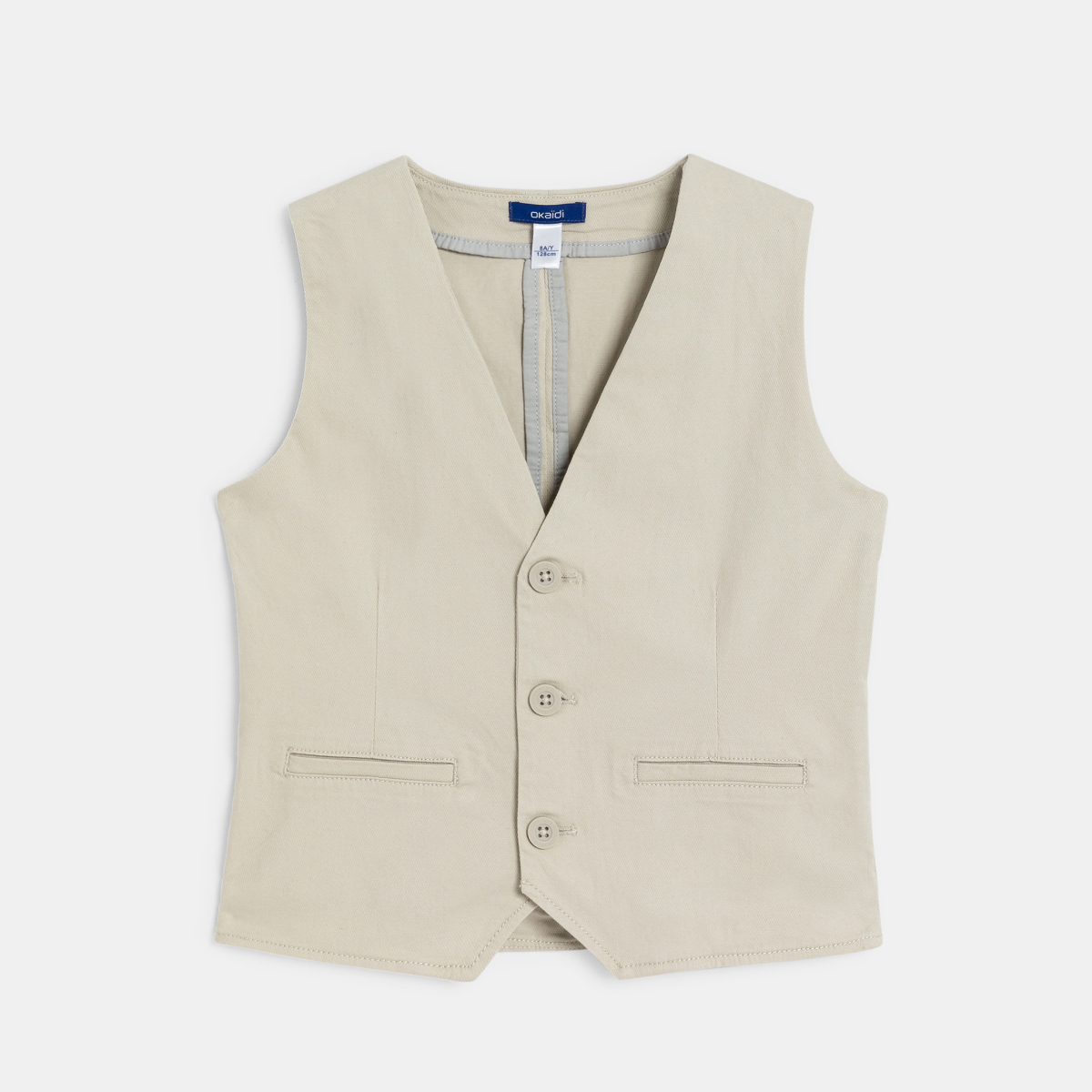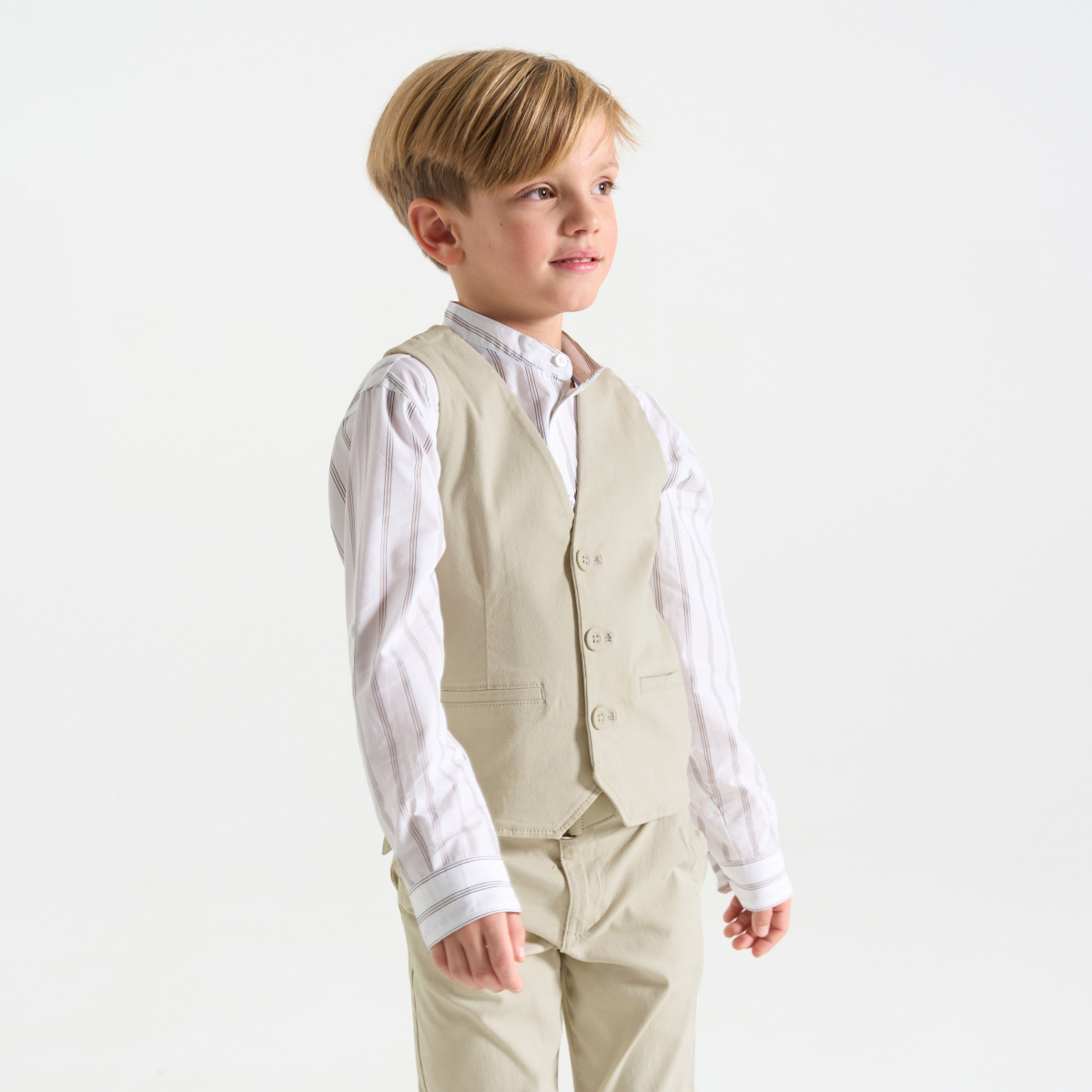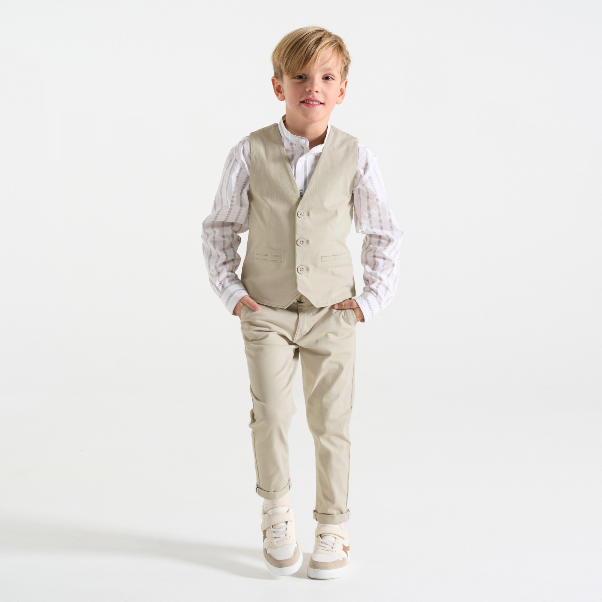 إنها الطريقة الأسهل والأكثر أمانًا لإضافة الأناقة إلى الإطلالة! يرتدي الأولاد سترة مع قميص أو تيشيرت. القصّة مضبوطة على مقاس الجسم. ياقة على شكل V والفتحات بأزرار. أكمام بتقويرة هالتر قصة مثلثة الشكل من الأمام، والظهر مستقيم.