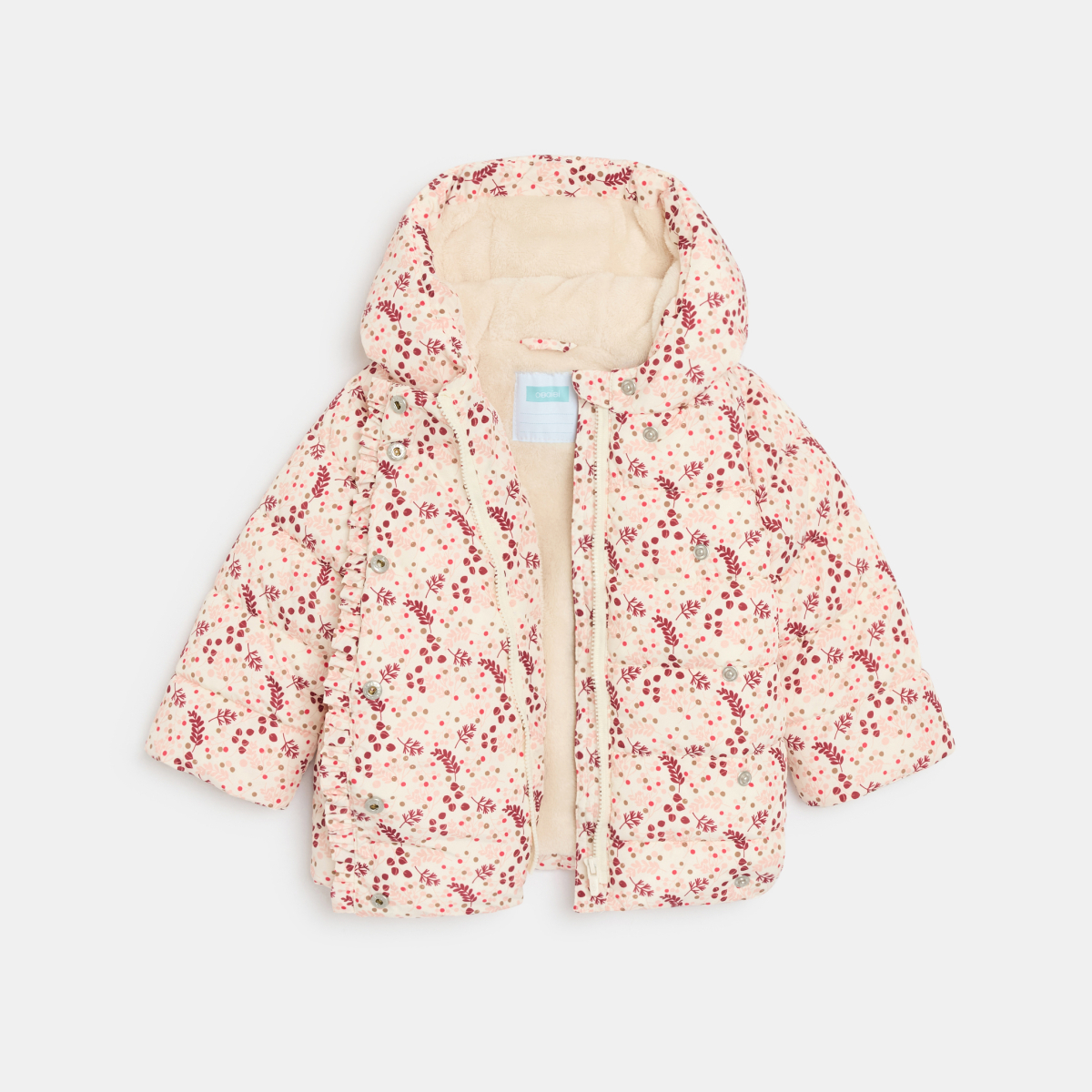 سترة مبطنة مقاومة للماء مشجرة، وردية اللون، للطفلة الصغيرة