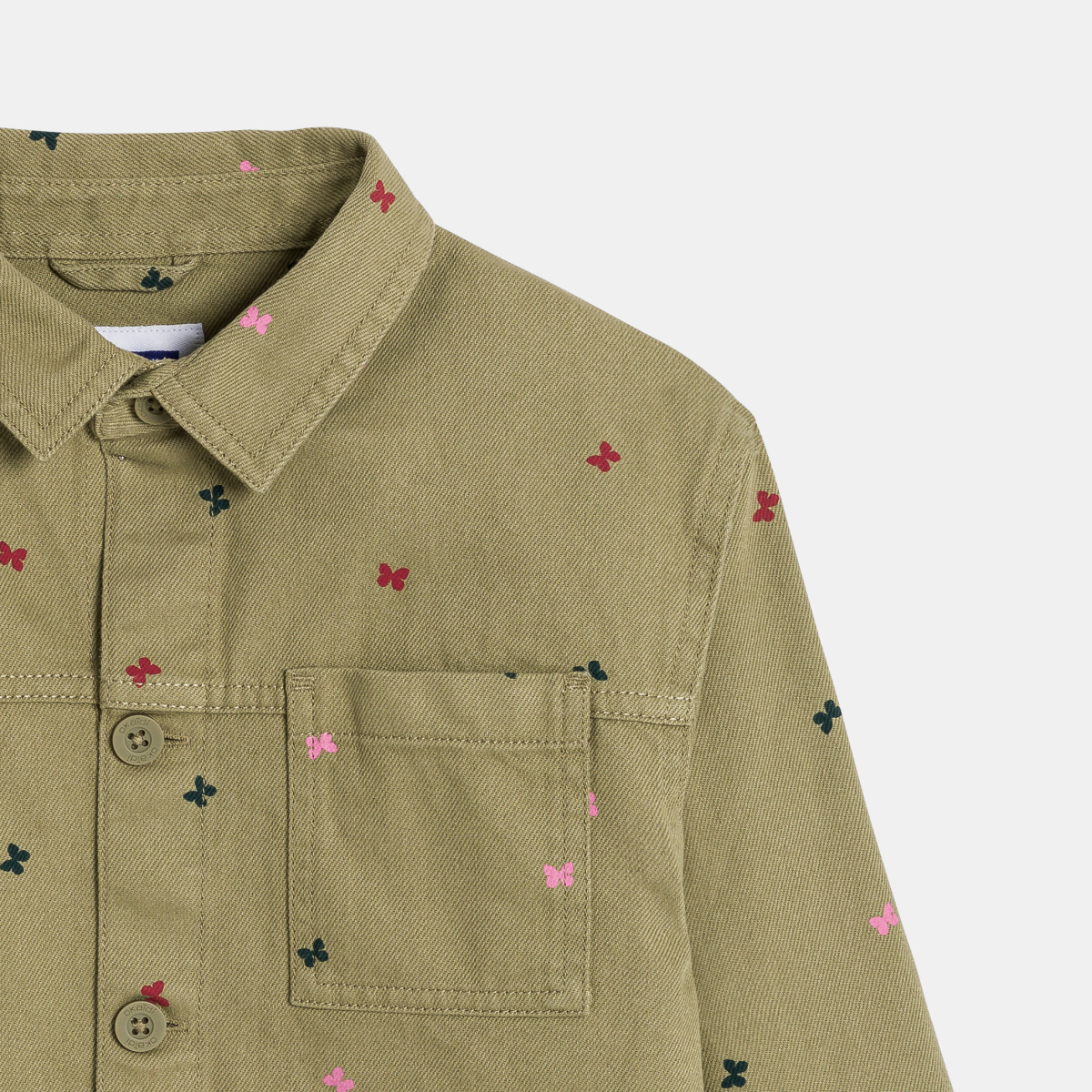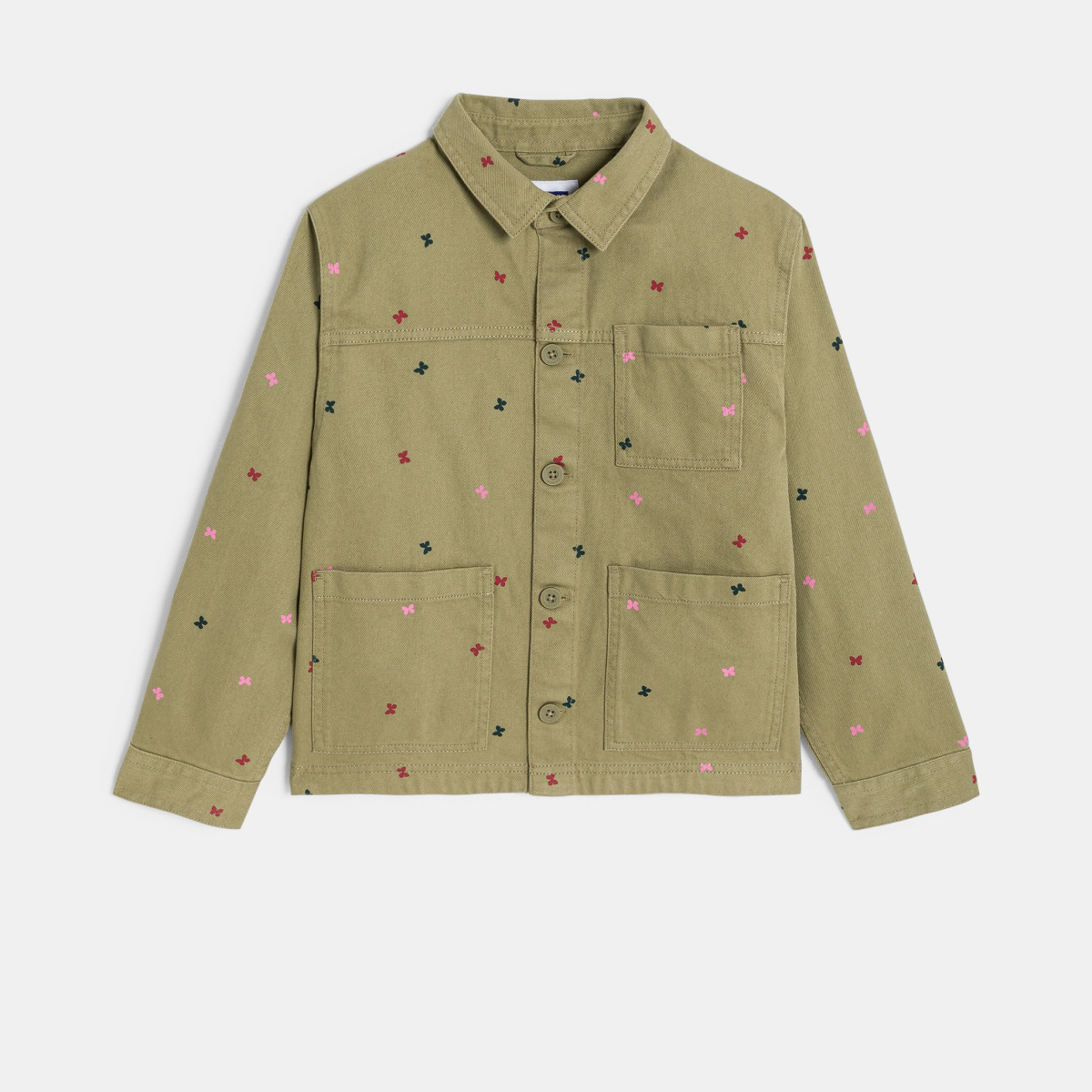 سترة من قماش عليه نقش فراشة، كاكي اللون للفتيات
