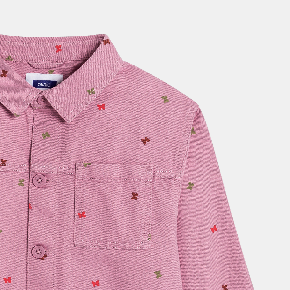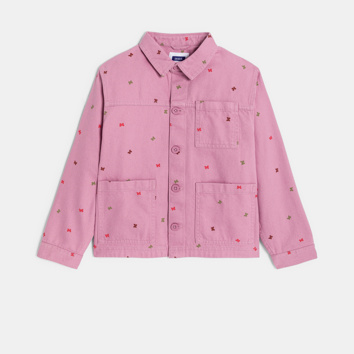 سترة من قماش عليه نقش فراشة، وردي اللون للفتيات