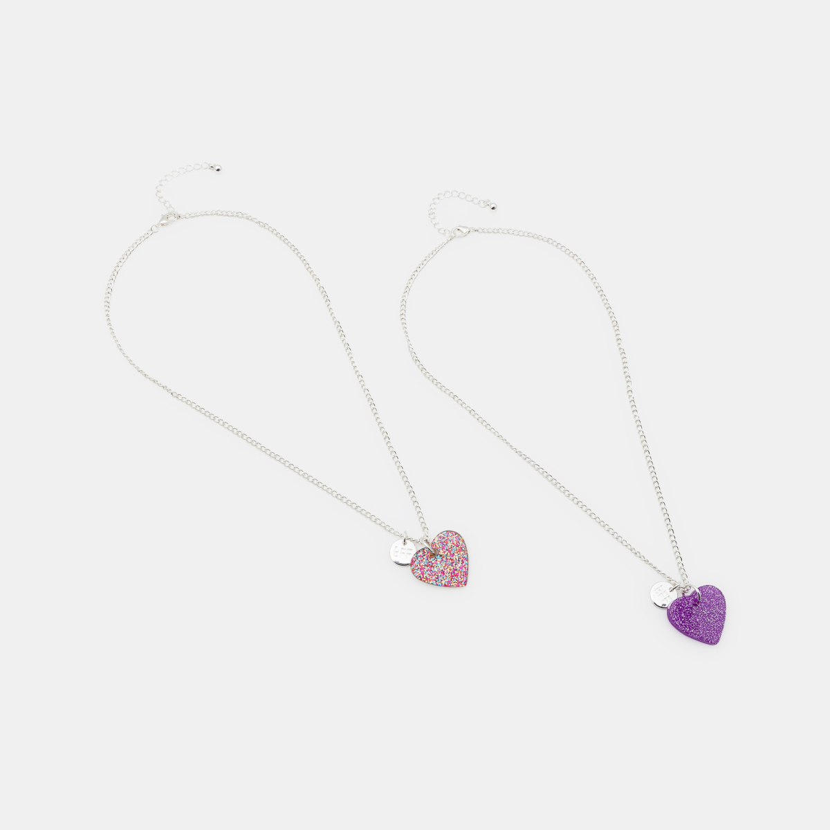 قلادات على شكل قلوب ومُرصعة بالترتر للفتيات (طقم من 2)