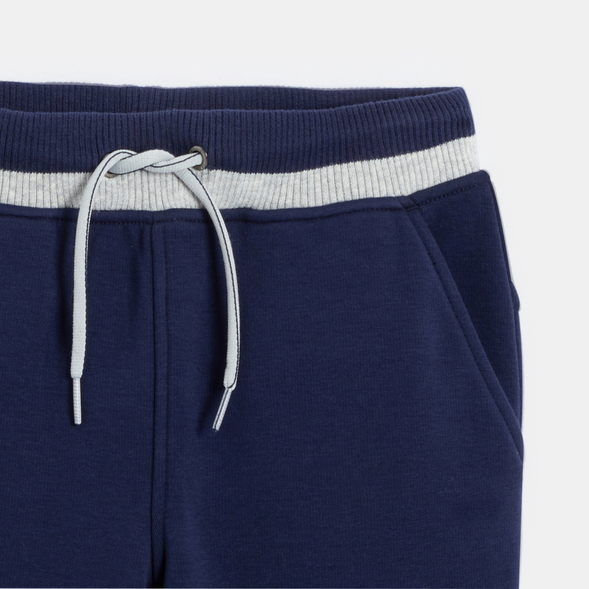 وصفي بنطلون شرنقة أو رياضي: البنطلون الرياضي دائمًا ما يكون على المسار لإسعاد الأولاد. قماش ميلتون ناعم ودافئ. قصة رياضية. شريط متباين اللون وخصر مضلع مطاطي قابل للضبط، رباط يمكن ربطه. 2 جيب. أسفل البنطلون مضلع.