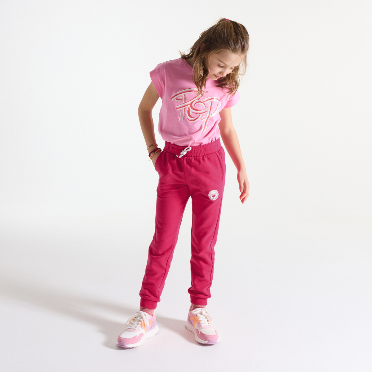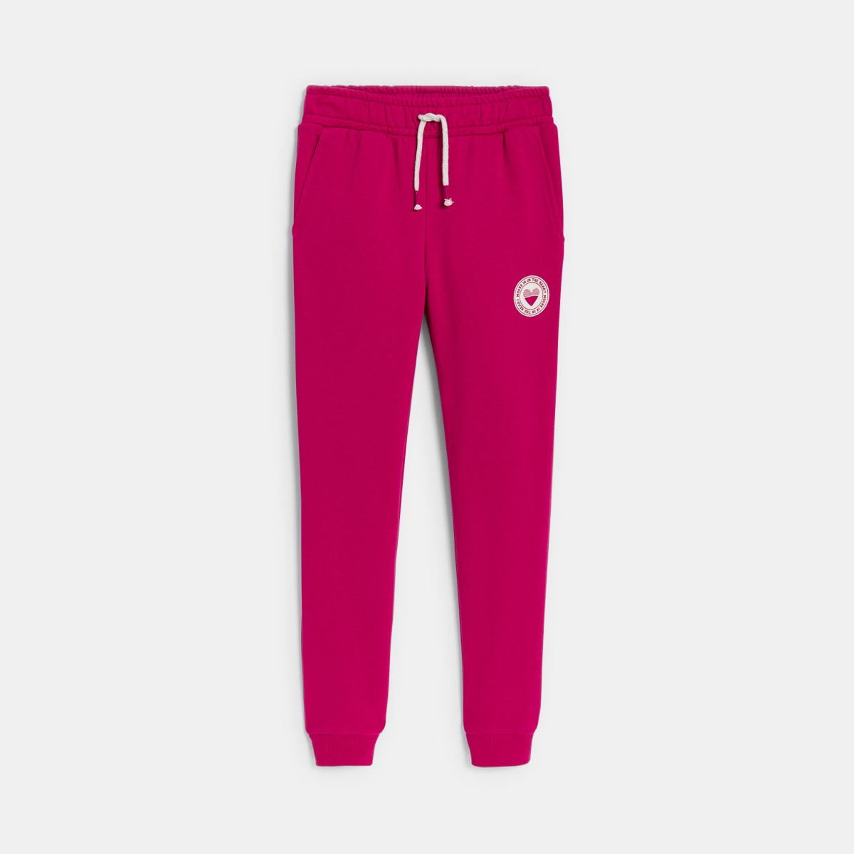 البنطلون الرياضي حاضر بقوة هذا الموسم. في المنزل أو في المدينة أو في الملعب الرياضي: إنه ملاذ آمن مريح وعصري للغاية! قصة رياضية. جيبان. شريط خصر مطاطي مضلع مع أربطة منزلقة يتم ربطها. نقوش على شكل قلب مطبوع بشكل بارز. البنطلون مضلع عند أسفل الساقين. خياطة من اللون ذاته.