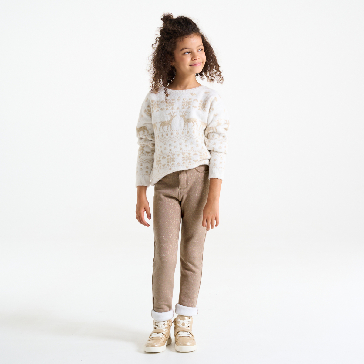 بنطلون جيرسيه ميلانو البيج مطرز بالترتر للبنات